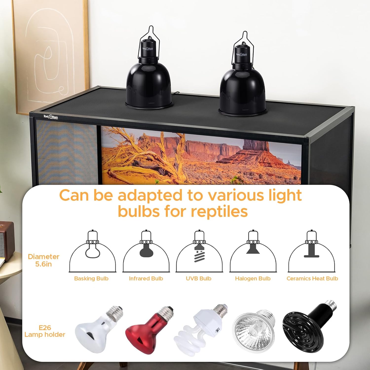 - Built to Last: Equipped with a durable E26 ceramic lamp cap that supports up to 100W, this 2-pack fixture resists heat damage and delivers reliable performance for your enclosure.