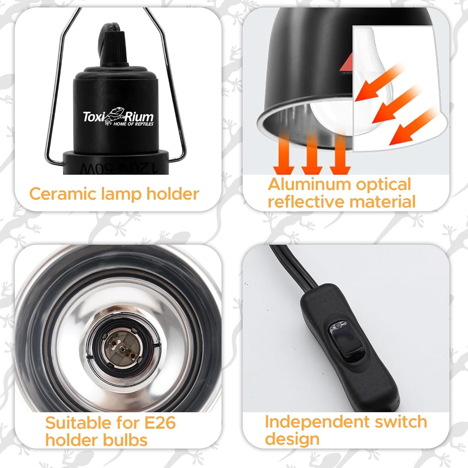 - Works with All Your Bulbs: Perfect for UVA, UVB, heat lamps, or energy-saving bulbs (up to 100W, max 5.9-inch length), giving you flexibility to meet your reptileβs specific needs.