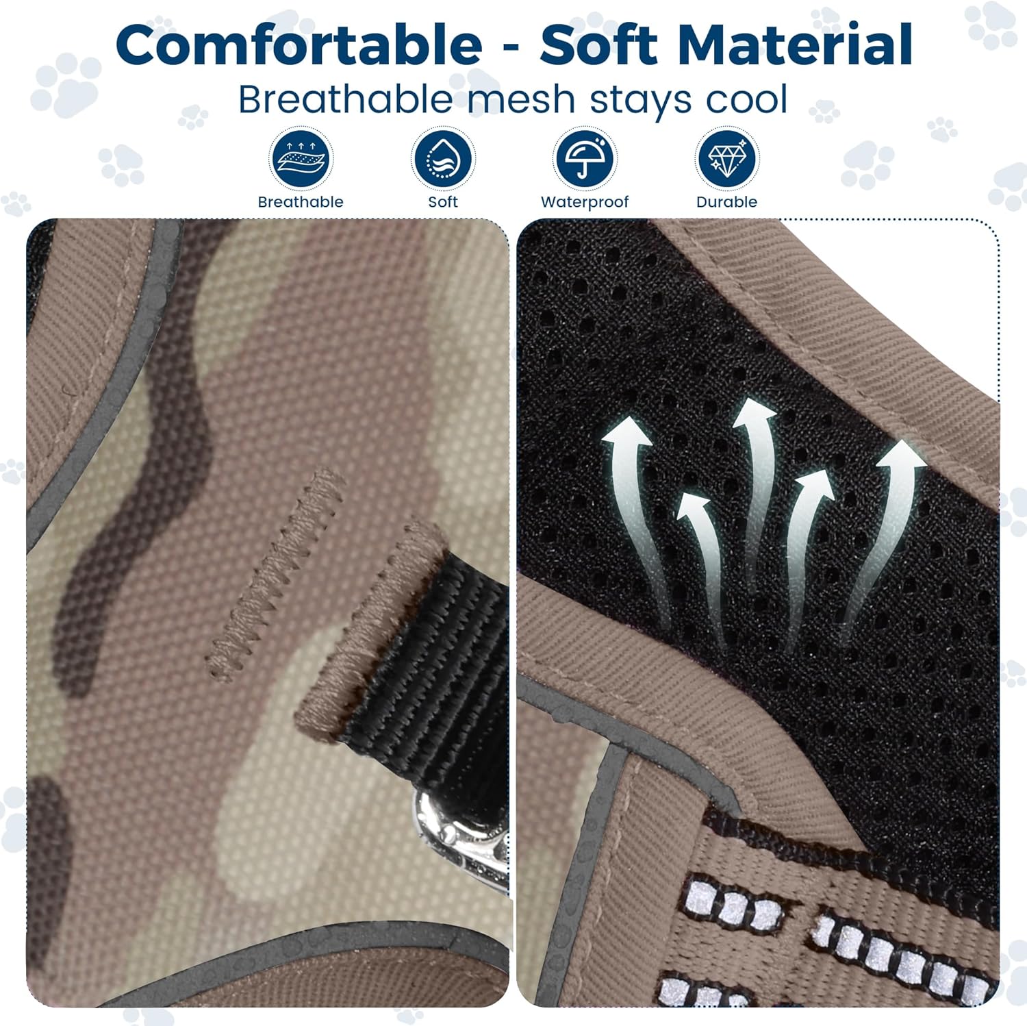 - MAXIMIZE COMFORT: 100% polyester + oxford fabric, durable and waterproof. Lightweight mesh lining and soft padding on the chest and abdomen for good load distribution and injury prevention. Protects your pet while offering maximum comfort and long-term use. Breathable air mesh allows the dog from sultry after activity.