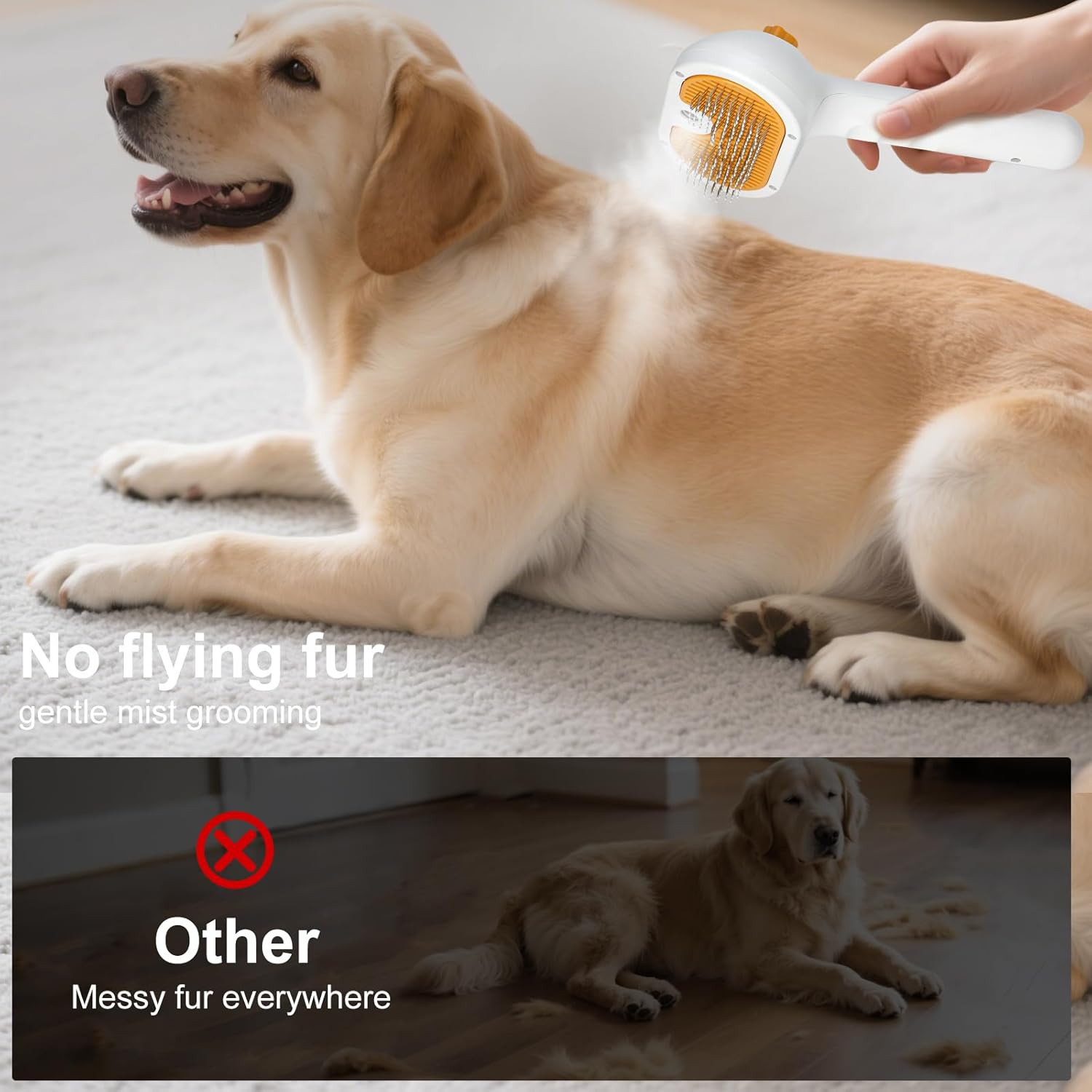- Please note this product is not waterproof – avoid direct contact with running water. Always use the included empty bottle for filling water. Before charging, check the charging port for moisture and ensure it's completely dry. For optimal results, use only 5 drops of shampoo per application. This product uses ultrasonic technology to produce only cool mist, not steam. It doesn't generate heat; it gently transforms water into a fine mist, providing a refreshing and safe experience for your pet.