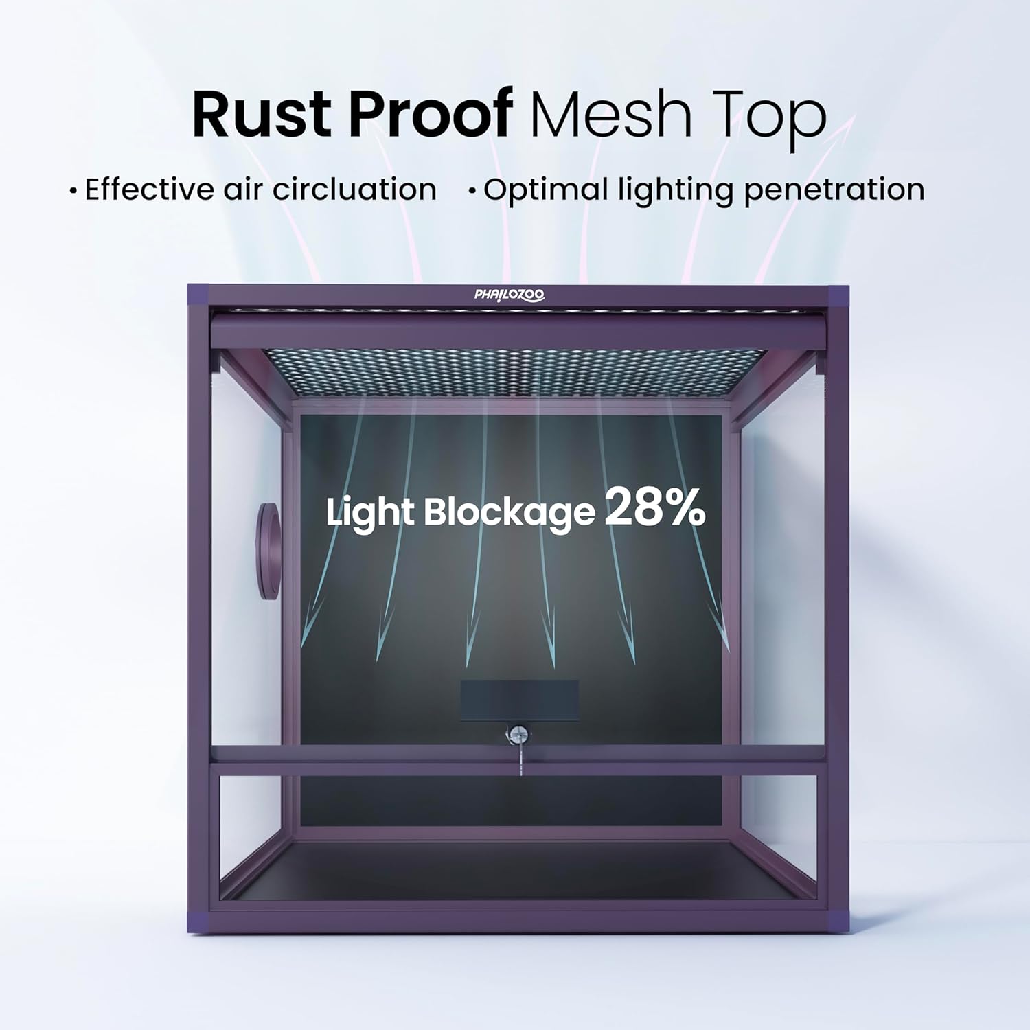 - γPerfect for BeginnersγPhailozoo 24-gallon reptile tank with single grommet measures 18'Lx18''Wx18''H. It only weighs 16.5 pounds. Easily assembled in six steps, perfect for first time reptile keepers.