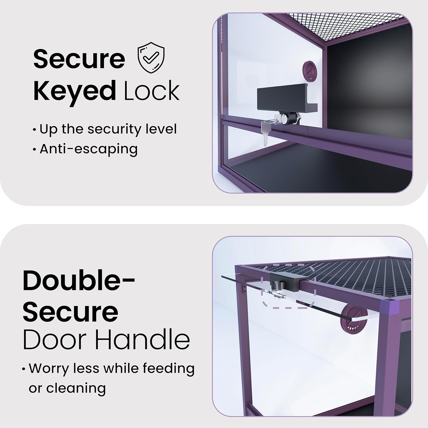 - γLock IncludedγA tempered glass door with a safety keyed lock to prevent escape and accidental opening by others. NO GAPS FOR ESCAPING with fully closed structure. Rigid tempered glass doors for extra safety.