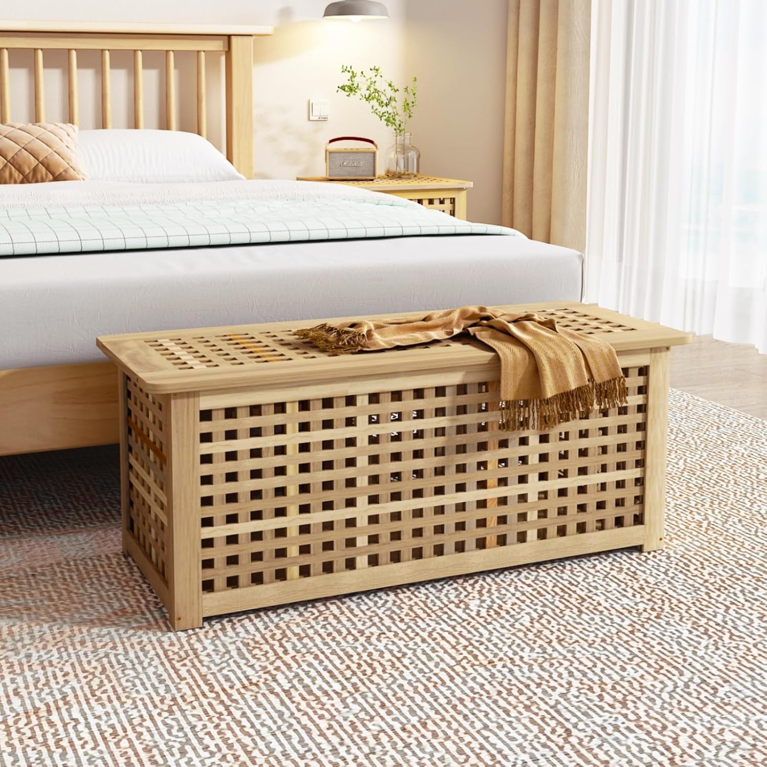 - Fits Any Room, Matches Any Style:With its classic grid design and natural acacia wood finish, this bench with storage blends seamlessly into any home decor. Whether you need a storage bench for your entryway, bedroom, living room, or bathroom, itβs as stylish as it is functional.
