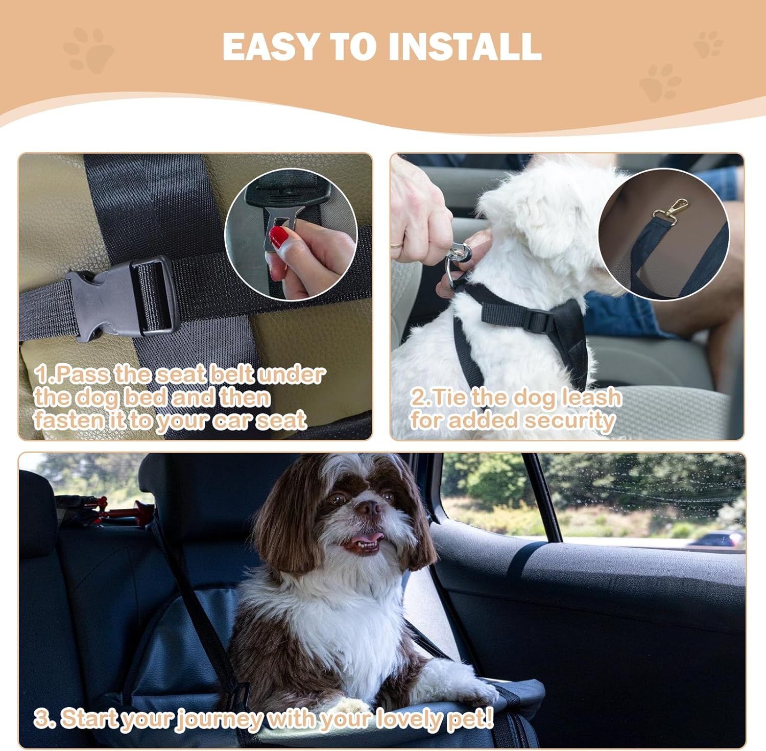 - [Multi-functional dog bed]: When you go out, this pet booster seat can not only be used as a car seat for your dog, but also as a fashionable portable pet bag. You can carry it by hand or on one shoulder. Its wide shoulder strap is made of high-quality nylon, which won't pinch your hands or shoulders. The length can be adjusted to reduce your burden and make it easy to take your pet anywhere. At home, This pet seat can serve as a comfortable dog bed.