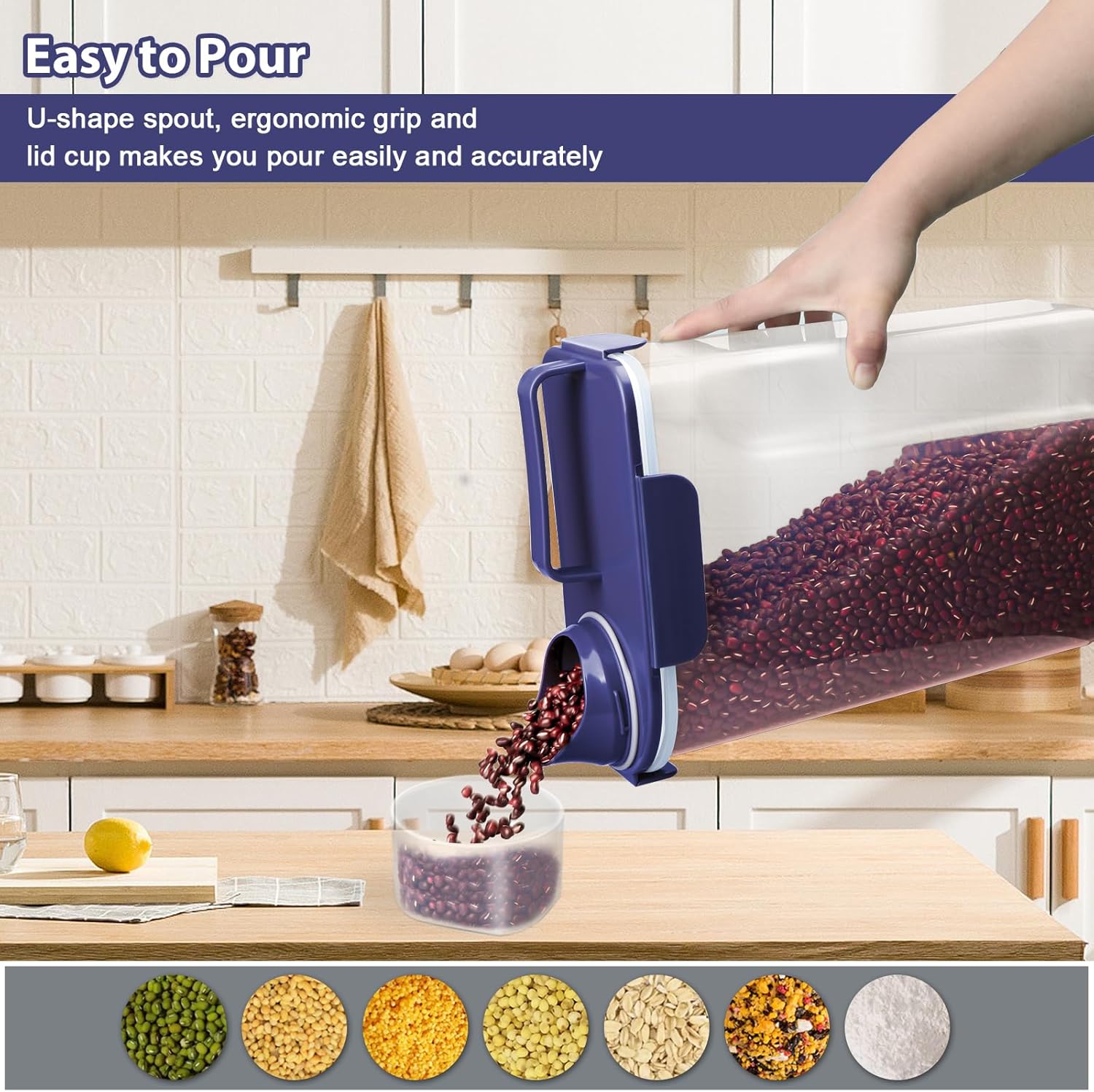 Rice Container, Airtight Rice Storage Container 10lb, Cereal Containers Storage, BPA Free Food Dispenser with Pouring Spout Handle for Flour Pasta Grain, Pet Dog Cat Bird Food Storage Container