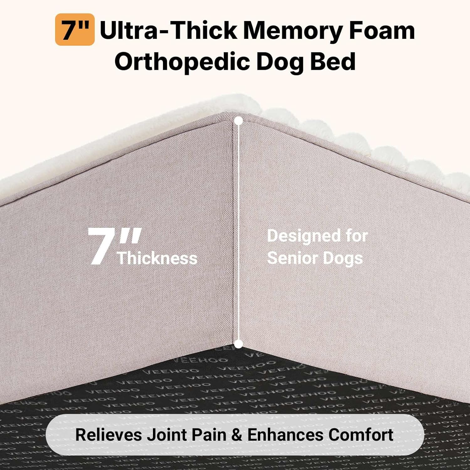 • 7" Orthopedic Relief for Aching Joints: Give your senior companion or large breed the pain-free rest they deserve. Our therapeutic 7" orthopedic dog bed combines premium memory foam and support foam to precisely cradle joints, alleviate pressure points, and provide comfort especially for dogs suffering from arthritis or other joint issues.