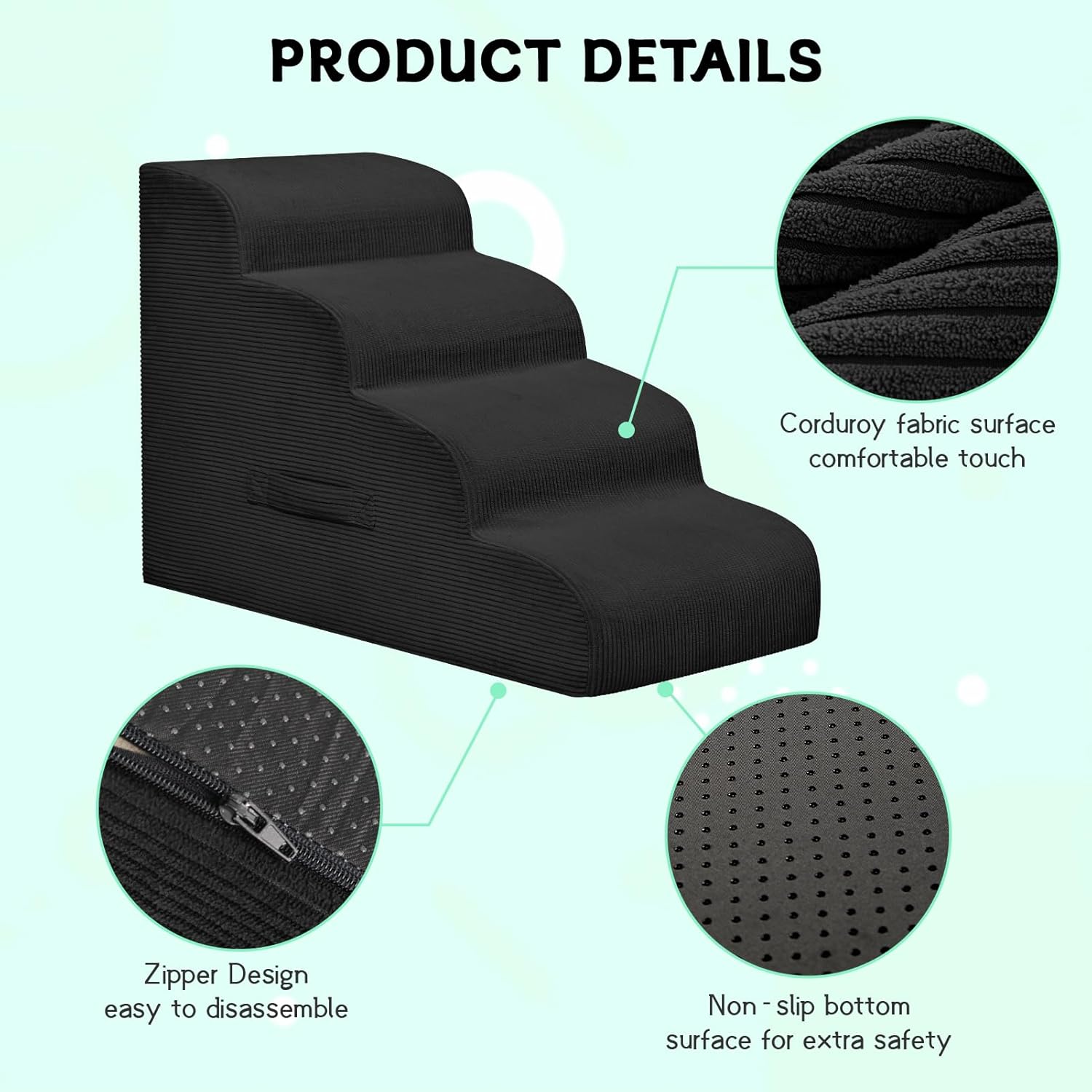 - 【Double Anti-Slip】Mesa Lemon foam dog stair cover is made of WATERPROOF corduroy to increase more friction between your pet's paws and the steps than other fabrics. And the dog step has rubber dots on the bottom to keep the pet stairs in place by extra grip.