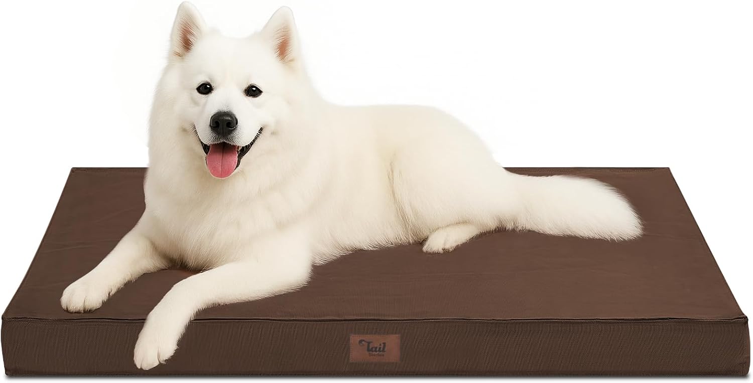 Outdoor Large Dog Bed, Waterproof Dog Bed for Large Dogs, Egg Crate Foam Pet Bed with Removable Washable Oxford Cooling Cover, Brown