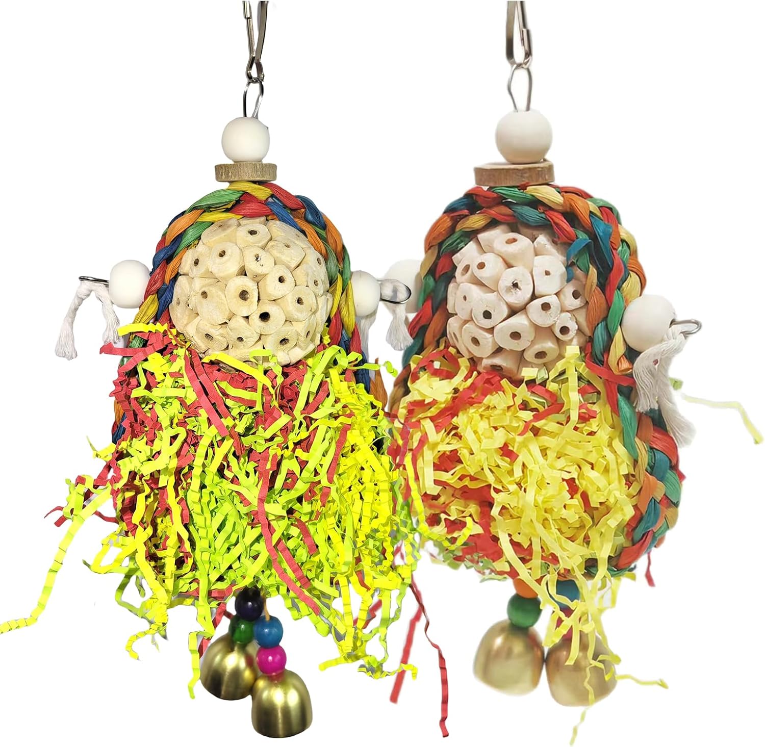 - 【INSTALL】 Each bird toys has a hanging hook, which can easily help you hang in the bird cage or play area, saving you time and making it easier to install