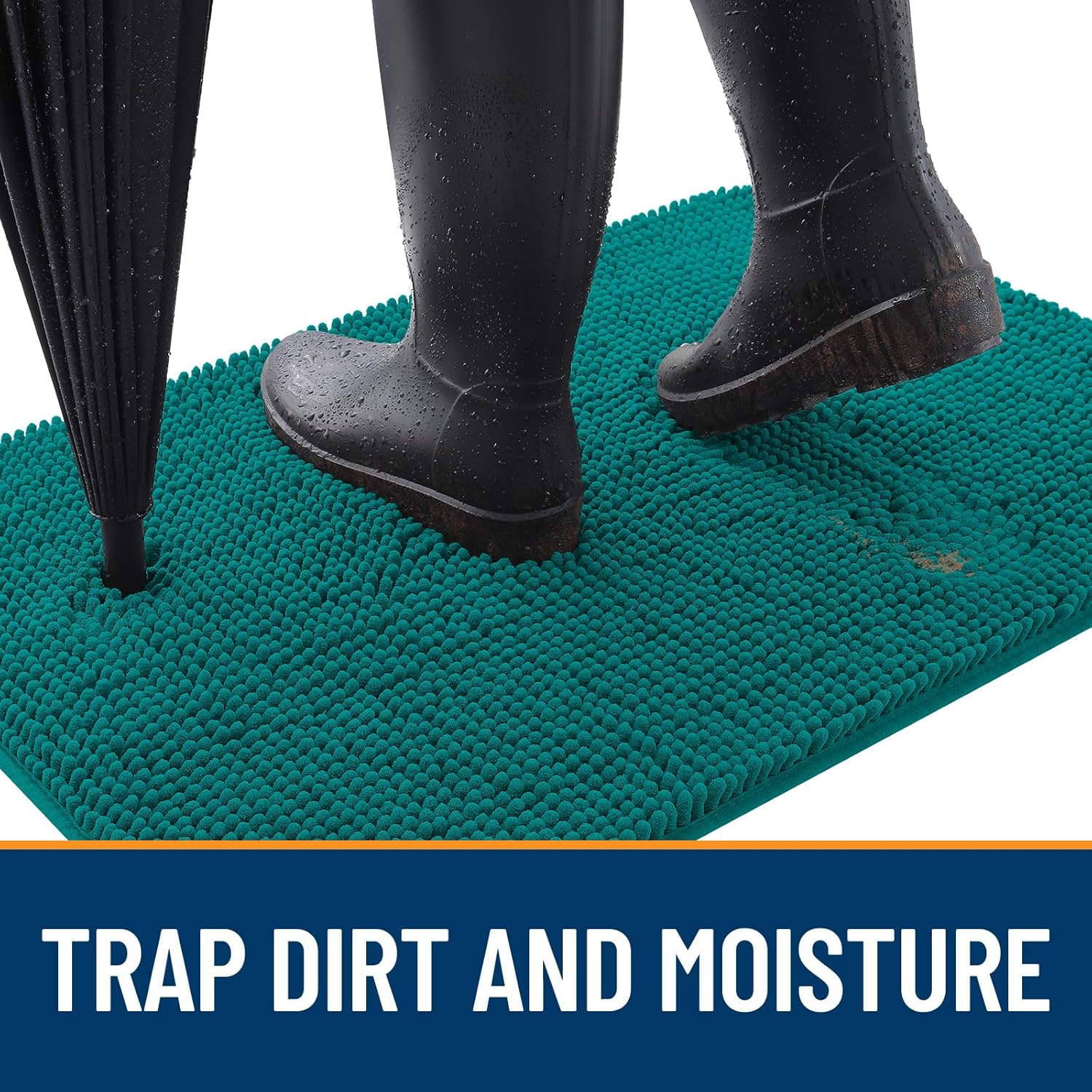 OLANLY Dog Door Mat for Muddy Paws 44x24, Absorbs Moisture and Dirt, Absorbent Non-Slip Washable Doormat, Quick Dry Chenille Mud Mat for Dogs, Entry Indoor Entryway Carpet for Inside Floor, Lake Blue