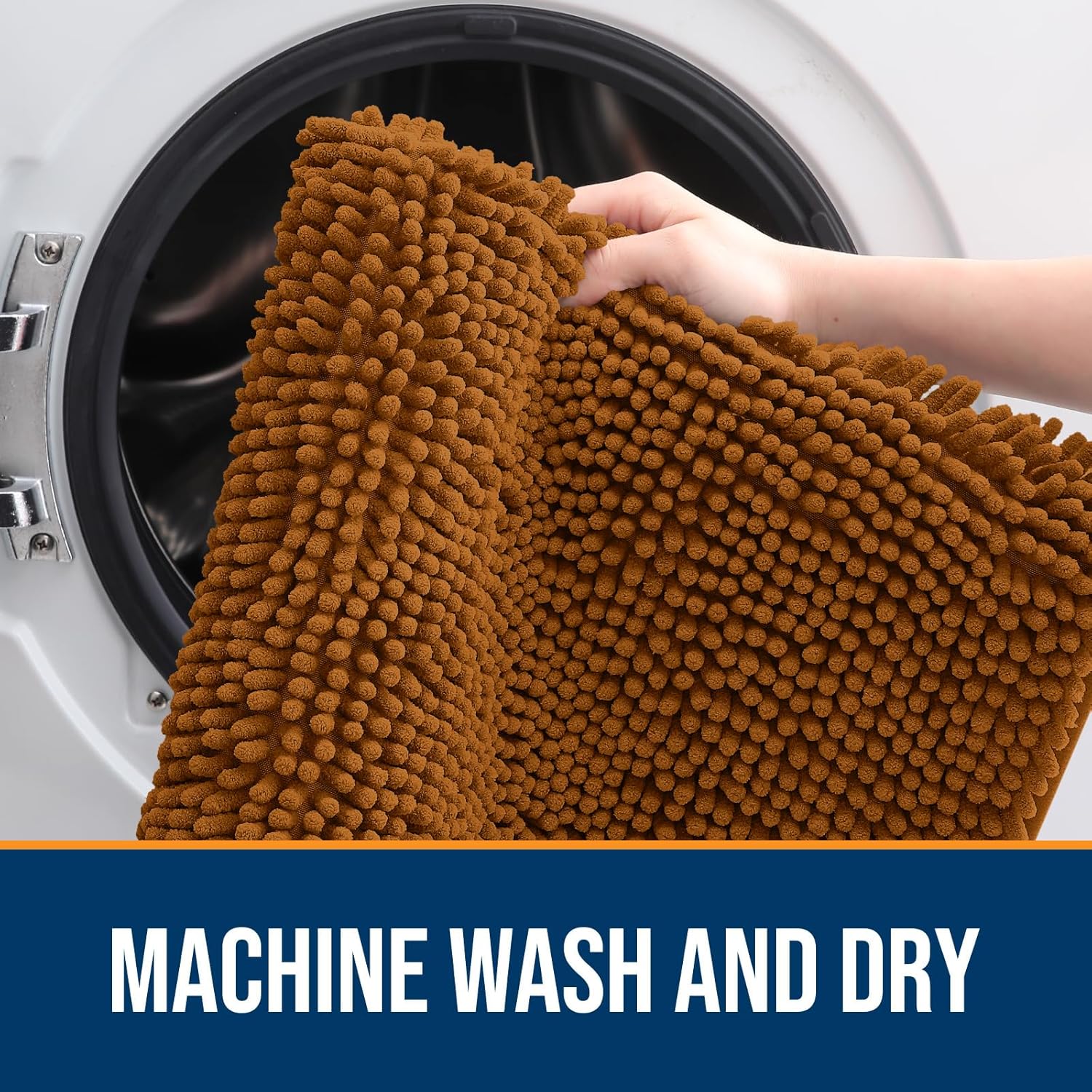 OLANLY Dog Door Mat for Muddy Paws 24x16, Absorbs Moisture and Dirt, Absorbent Non-Slip Washable Doormat, Quick Dry Chenille Mud Mat for Dogs, Entry Indoor Entryway Carpet for Inside Floor, Ochre