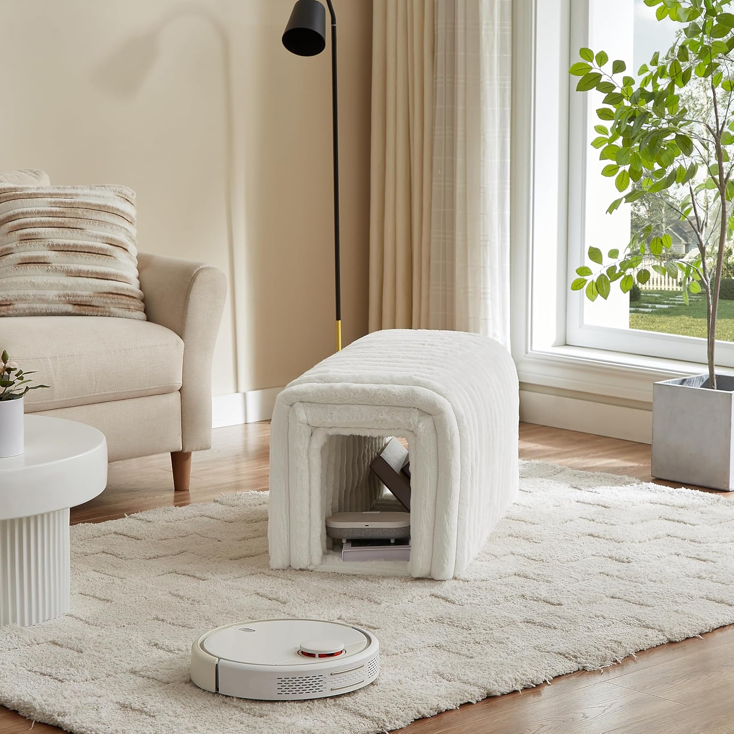 - 【Arch hollow design, can both sit and "hide"】 It's not just a bench, it's a Storage compartment, and it's also a cat's nest to hide . It can hide the clutter of life,also a secret base for cats 。You can place movable cushions in the hollow area of the arch, so it's easy to clean and not afraid of getting dirty