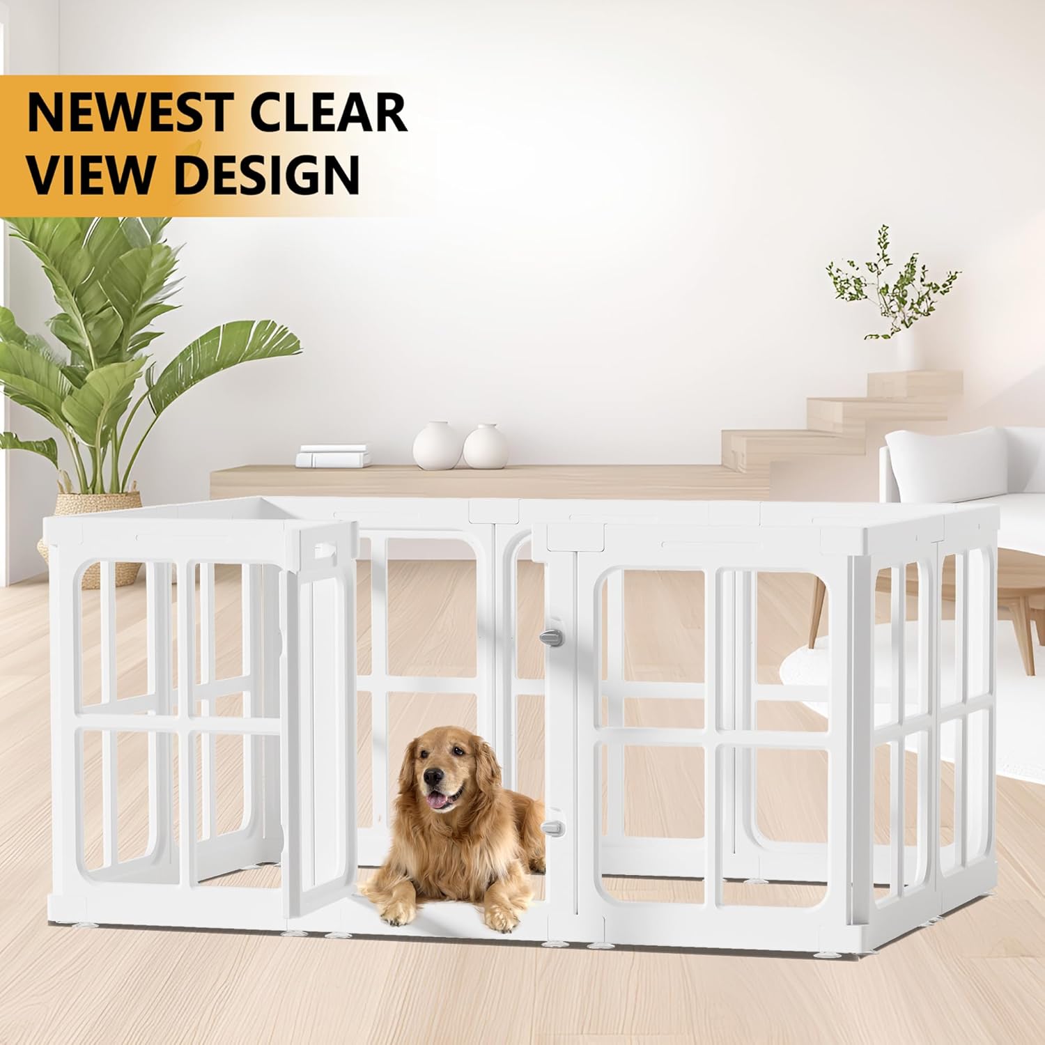 - 【MODERN & BEAUTIFUL DESIGN】- Our dog playpen breaks the traditional cage fence design, made of bright and transparent material, like a bright pet home, more beautiful, easy to clean, so that your pet is no longer anxious, no longer feel imprisoned, no longer worry about your pet getting stuck in the playpen, and it is also convenient for you to observe your beloved pets.