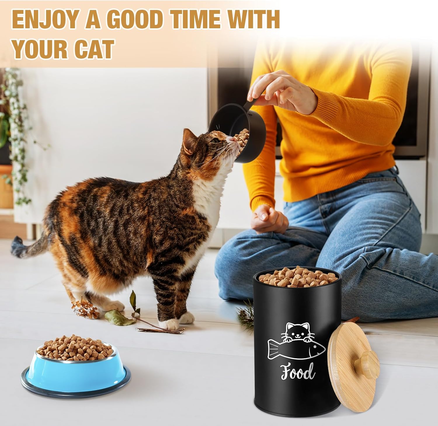 - Sealed Lid Keeps Food Fresh: each cat food container for kitchen counter is equipped with a sealed bamboo lid, which can effectively keep the food fresh and dry, and is also convenient to take at any time, ensuring the sealed preservation of pet food; The set also comes with a spoon for easy access