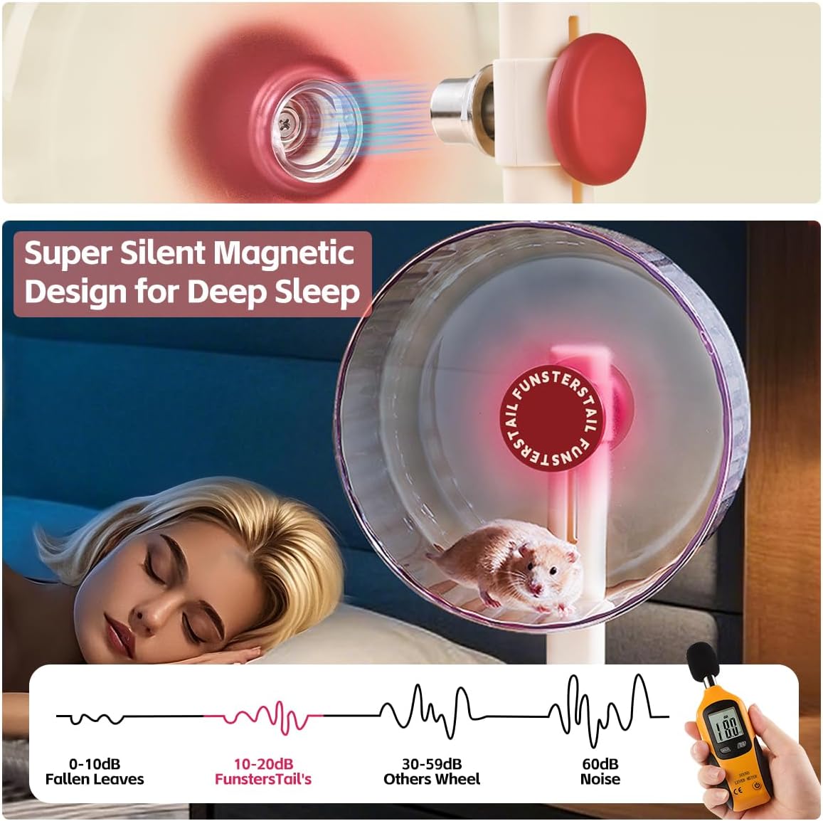 - Super Silent Night Runs: Our magnetic axle design eliminates friction noise, making it ideal for late-night use. Perfect for light-sleeping owners or cage setups—your dwarf hamster or hedgehog can run freely without disturbing your sleep