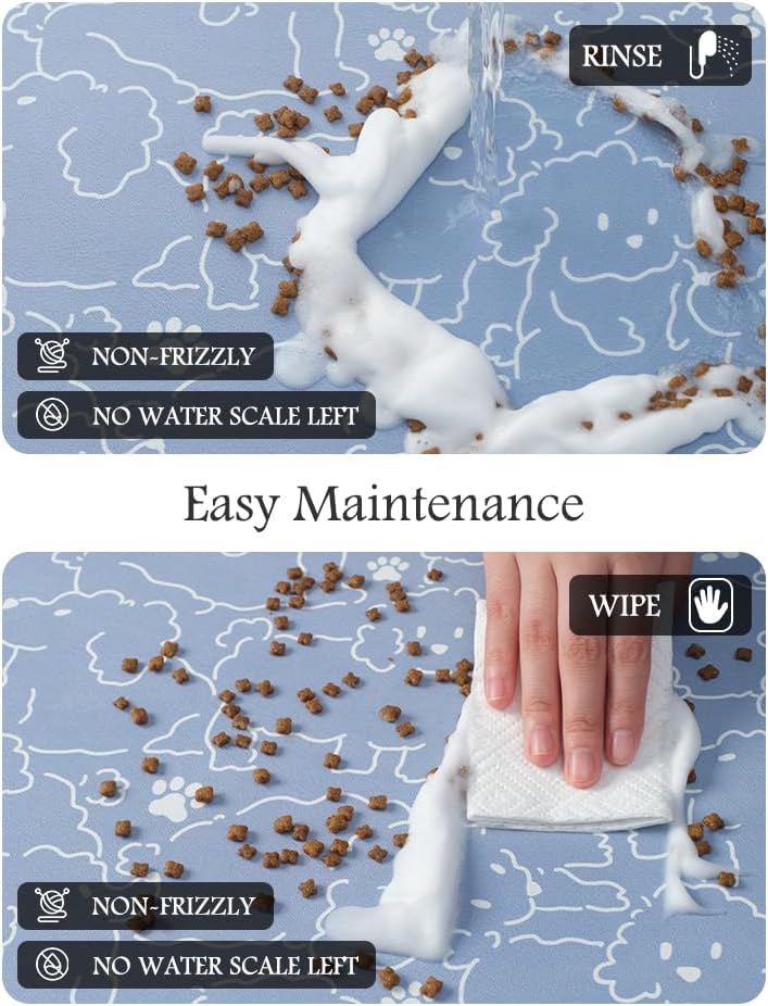 - Super Absorbent & Durable: Perfect pet supplies.This pet food mat can prevent liquid from overflowing. Super absorbent and quick-drying ability to avoid wetting pet paws even for messy drinkers. Sturdy dog & cat food bowl mat cannot be torn easily and avoid eating by mistake. Keep the pet's eating environment tidy and clean.