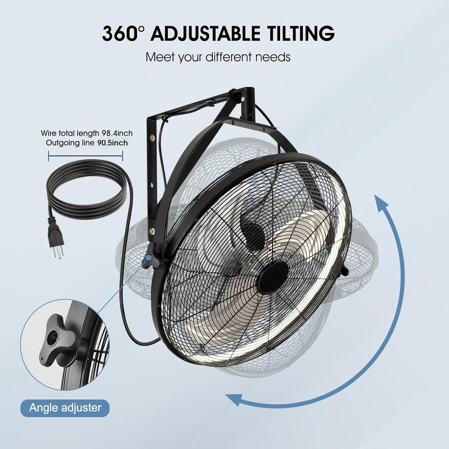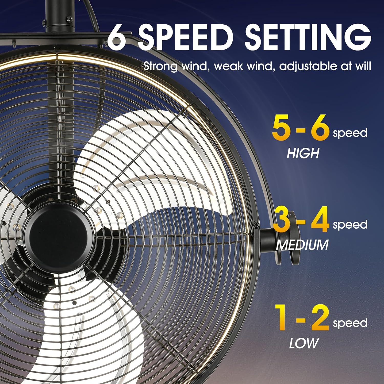 - 【Wall Mount Fan】Our wall fan with full metal casing,safer.The fan combines cooling and lighting in one,you can adjust wind speed,light,timing,reversible and many other functions,comes with a 7.5ft power cord,giving you the flexibility to place the outdoor fan in covered patios,garages,warehouses and factories.