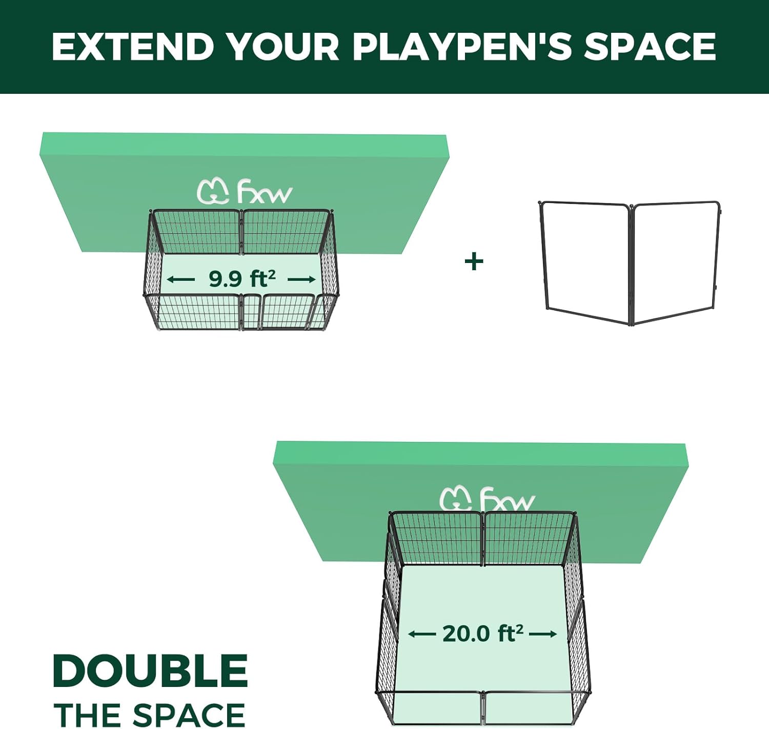 FXW Homeplus Unleashed Indoor Dog Playpen - Stress-Free and Safe Play, Heavy Duty 32 Inch 2 Acrylic Panels Dog Pen for Small and Medium Dogs, Black│Patented