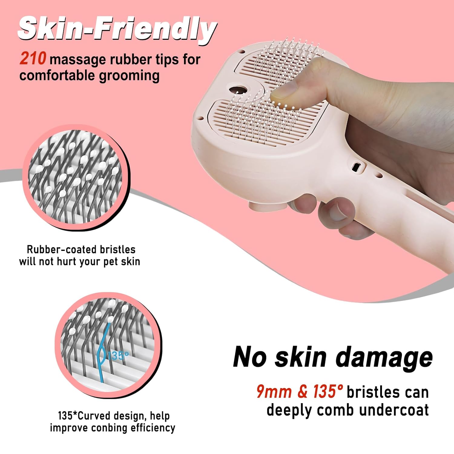 Dog Steam Brush 3 in 1 Cat Brush with Steam and Release Button Grooming Tool for Indoor Pets Dogs Hair Removal Shedding Water for Small Animals Long Short Haired(PINK)