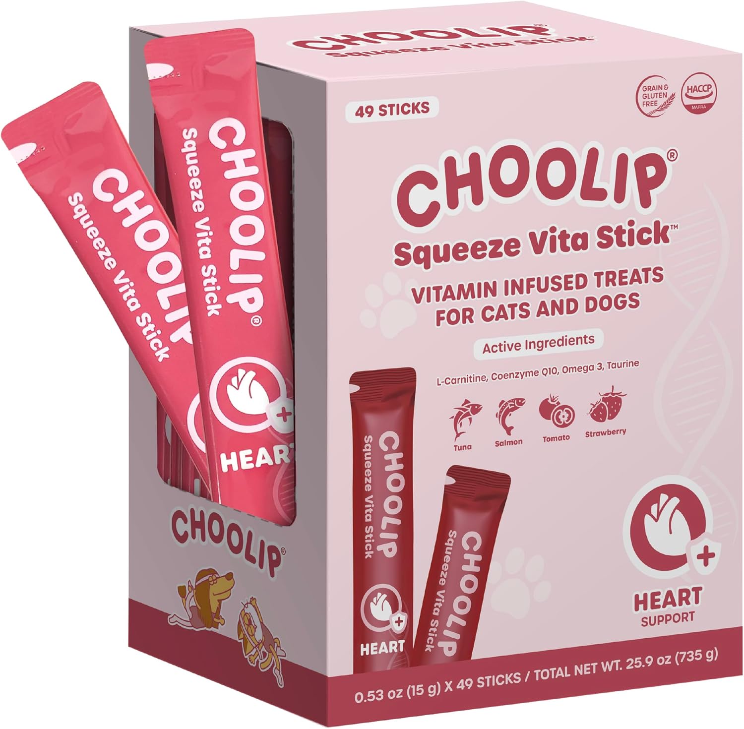 Grab & Go Squeeze Vita Stick Lickable Treats for Dogs & Cats. 49 Heart Support Sticks with Essential multivitamins. Soft and Tasty Paste for All Life Stages, Supporting Heart Health