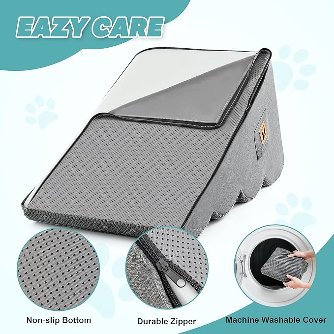 - EASY TO CLEAN: The hidden zipper design of the dog stairs for bed can prevent naughty pets from chewing or destroying it, and enhance the durability of the product. At the same time, the design of the machine washable cover can provide you with convenience. You only need to unzip the cover of the small dog stairs for couch and put it in the washing machine for washing, which can provide a clean and hygienic environment for your pet to the greatest extent.