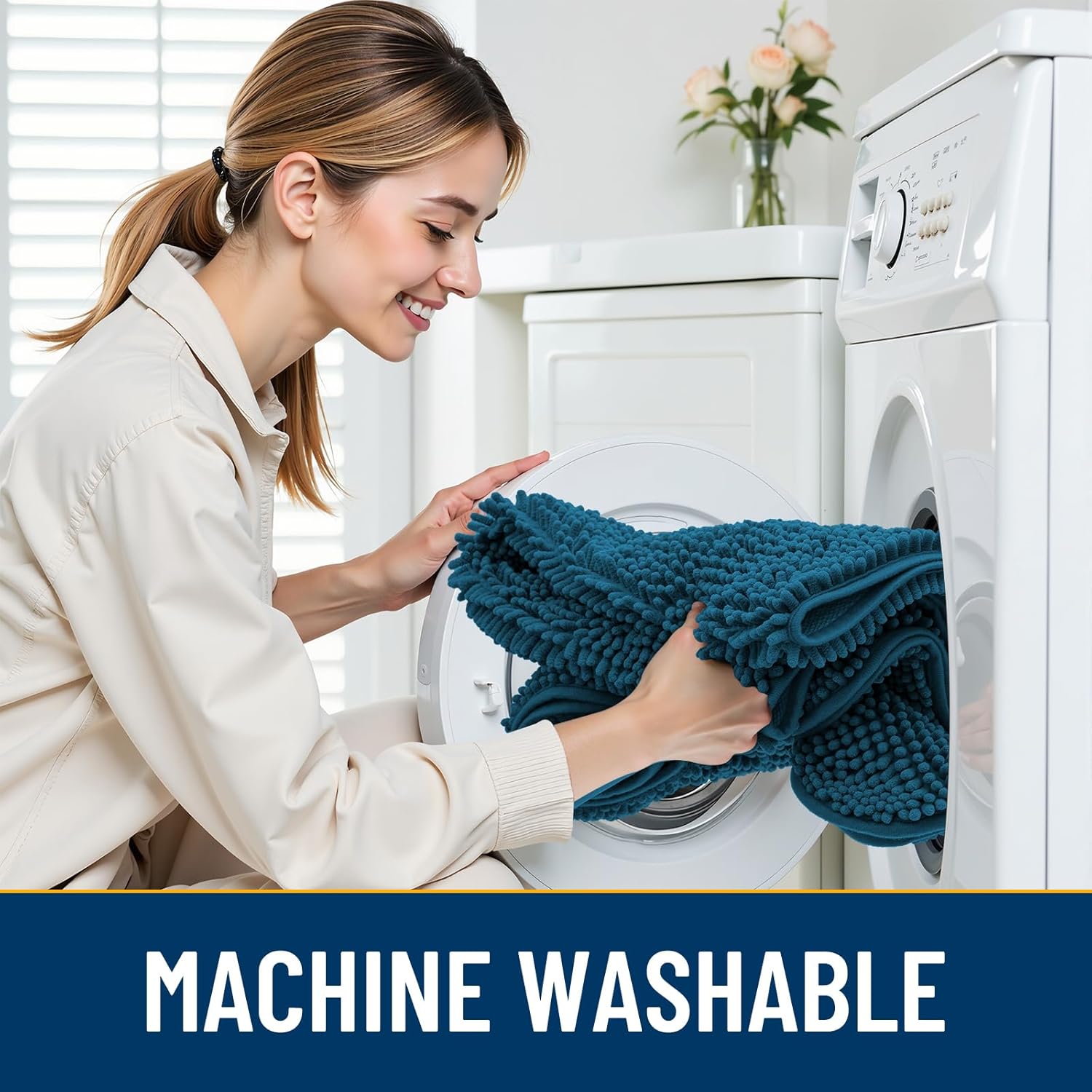Smiry Dog Door Mat for Muddy Paws 59x35, Absorbs Moisture and Dirt Doormat, Non-Slip Washable Quick Dry Chenille Front Door Mat Indoor Entrance, Entryway Carpet for Inside Floor, Atlantic Blue
