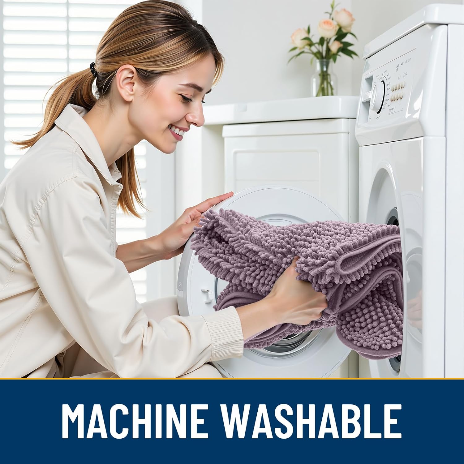 - [Absorbent and Dirt Trapper] High-density chenille dog mat, super absorbent and dirt-catching, whether wet after shower, muddy or moisture bring back by dogs, it can absorb well, so that you and your favorite pet can say goodbye to the wet and mud. It's an excellent choice for use as an entryway door mat, a welcome door mat or a dirt-trapping door mat.