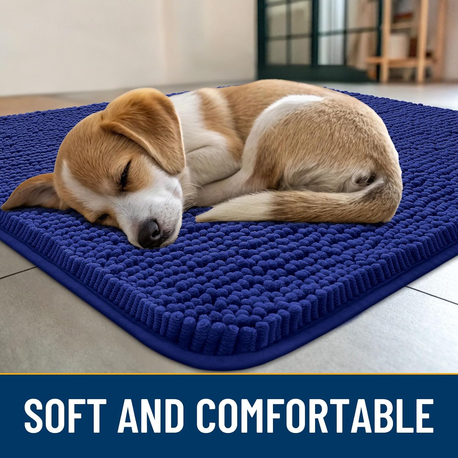 Smiry Dog Door Mat for Muddy Paws 71x46, Absorbs Moisture and Dirt Doormat, Non-Slip Washable Quick Dry Chenille Front Door Mat Indoor Entrance, Entryway Carpet for Inside Floor, Navy Blue