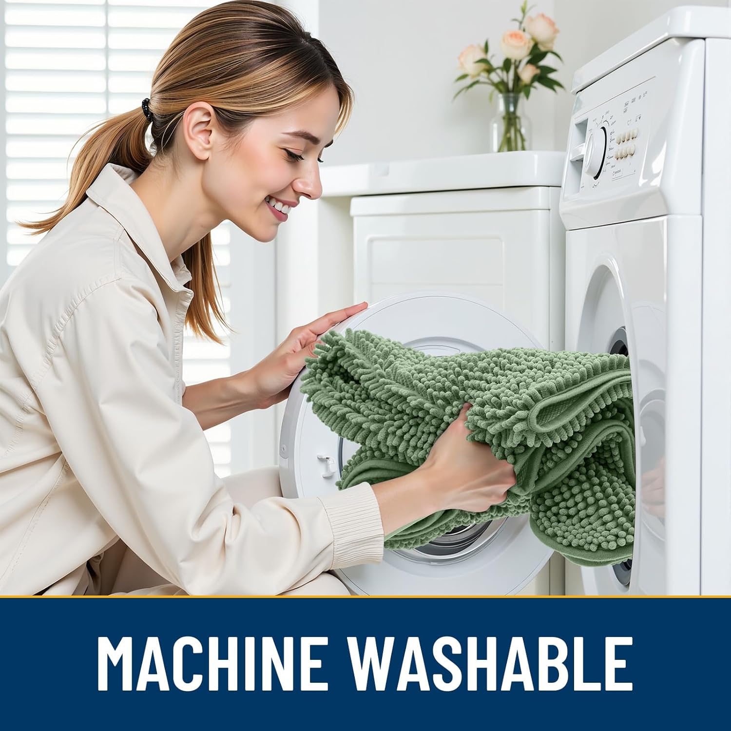 Smiry Dog Door Mat for Muddy Paws 24x16, Absorbs Moisture and Dirt Doormat, Non-Slip Washable Quick Dry Chenille Front Door Mat Indoor Entrance, Entryway Carpet for Inside Floor, Olive Green