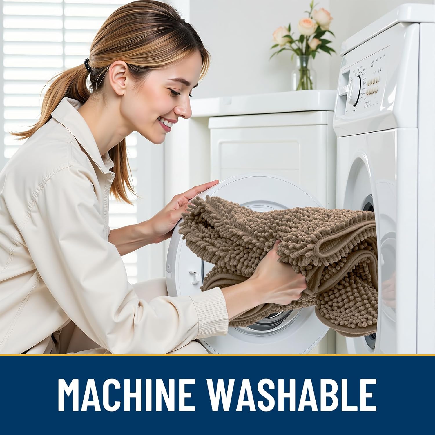 Smiry Dog Door Mat for Muddy Paws 47x32, Absorbs Moisture and Dirt Doormat, Non-Slip Washable Quick Dry Chenille Front Door Mat Indoor Entrance, Entryway Carpet for Inside Floor, Camel
