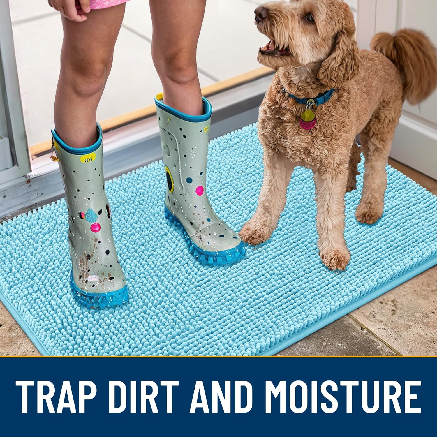 Smiry Dog Door Mat for Muddy Paws 36x24, Absorbs Moisture and Dirt Doormat, Non-Slip Washable Quick Dry Chenille Front Door Mat Indoor Entrance, Entryway Carpet for Inside Floor, Sky Blue