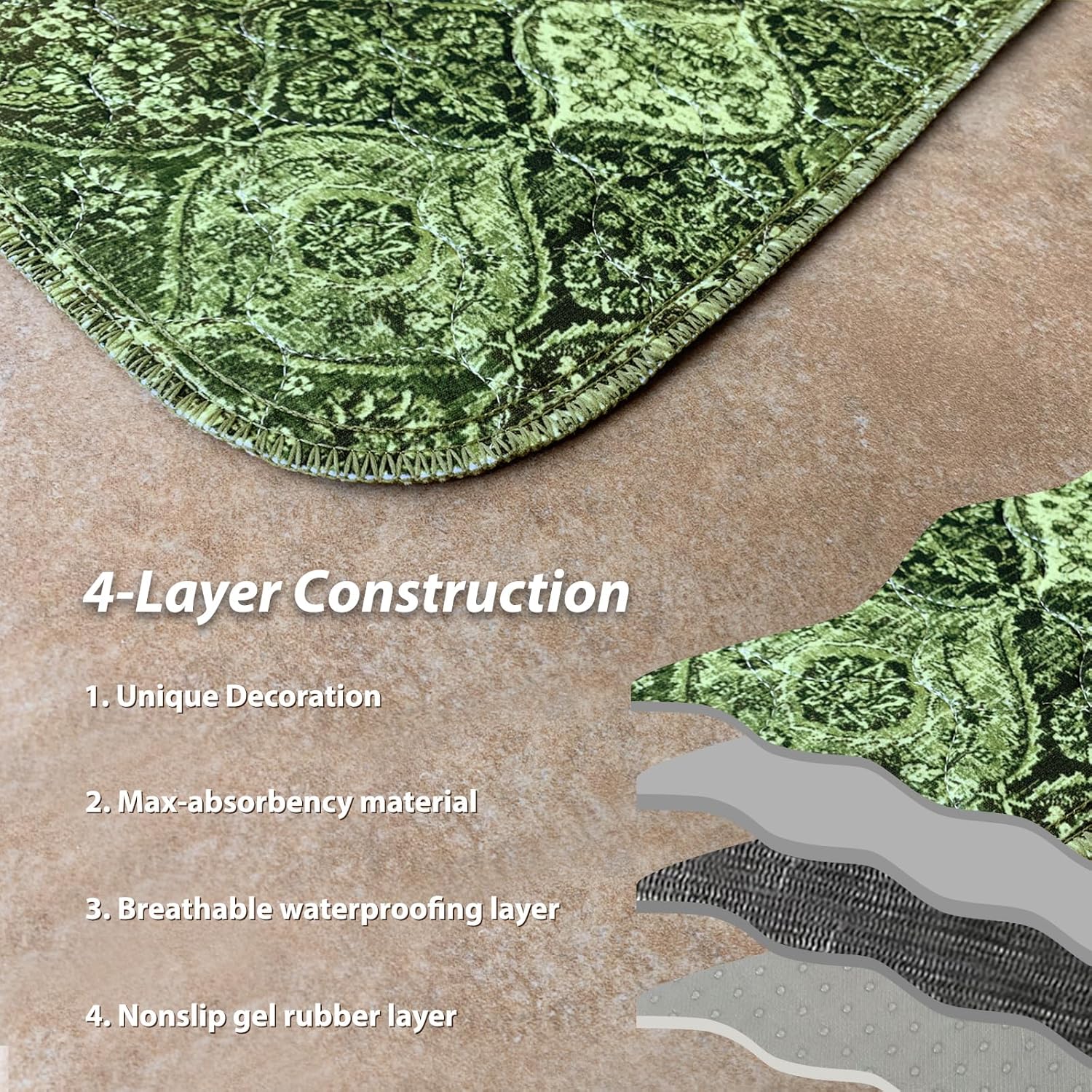 nunubaby Washable Pee Pads for Dogs, Stylish, Non-Slip and Leak-Proof Pee Pads. Reusable Potty Pads for Dogs for Crates and Floors.(Green/Multi, 24" x36")