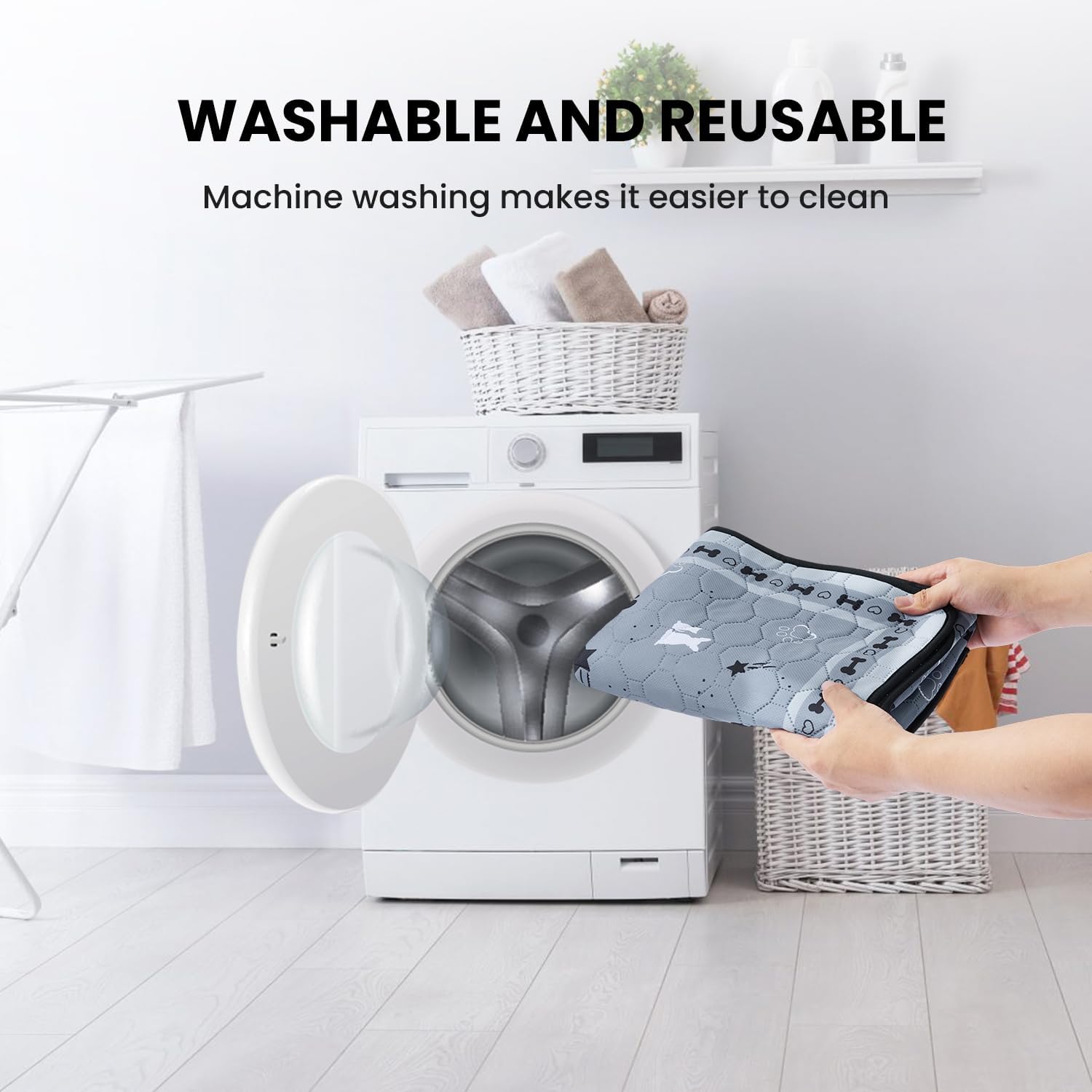 - Washable Pet Pad: This washable pee pad is infinitely reusable and machine washable. The washed pee pads will be restored to like-new condition without tearing, fraying or losing softness.