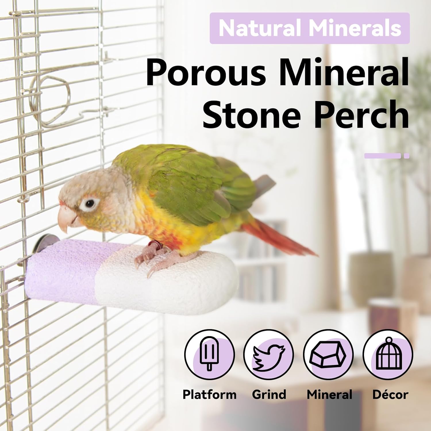 Natural Mineral Bird Perch for Cage Parrot Perch Platform for Beak Grinding Claw Trimming & Chewing Chew Toy for Parakeets Cockatiels Conures Birds Cage Accessories (Gradient Purple, 4.7")