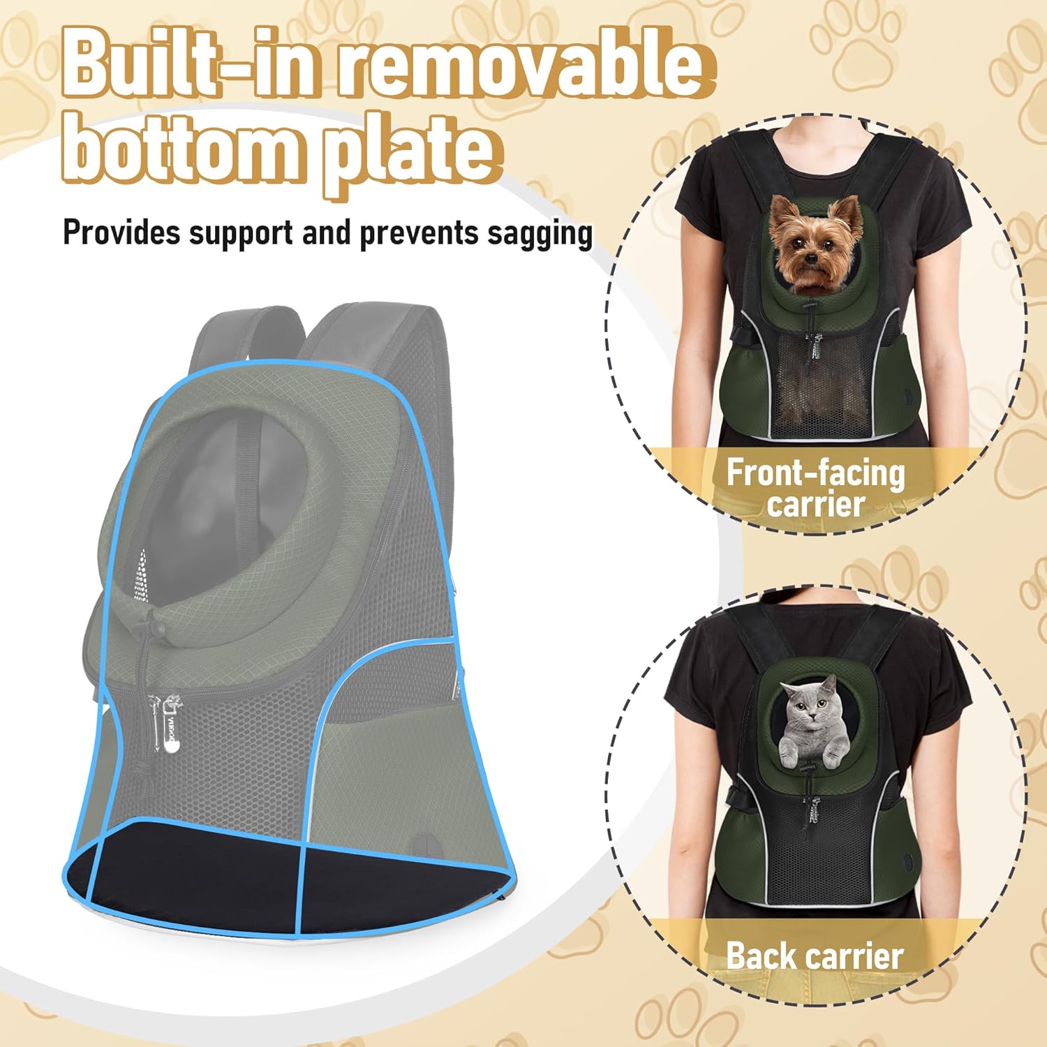 WOYYHO Pet Dog Carrier Backpack Small Dog Front Backpack Ventilated Mesh Dog Travel Back Pack with Safety Belt for Travel Hiking Cycling Outdoor Adventures (Size M: 5-9 lbs, Army Green)