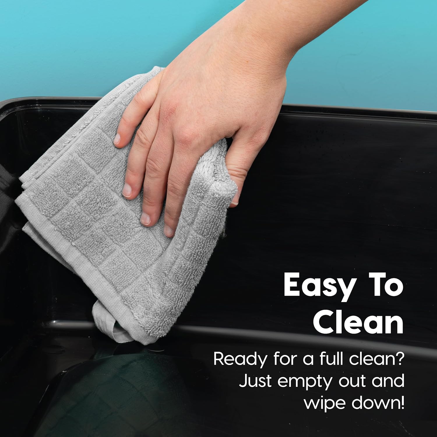 - EASY CLEAN: Designed with a smooth interior and minimal crevices, this litter box is easy to wipe down and maintain vs leading stainless steel litter boxes. The high walls help contain spills and litter scatter, reducing daily mess and keeping your catβs area cleaner with less effort.