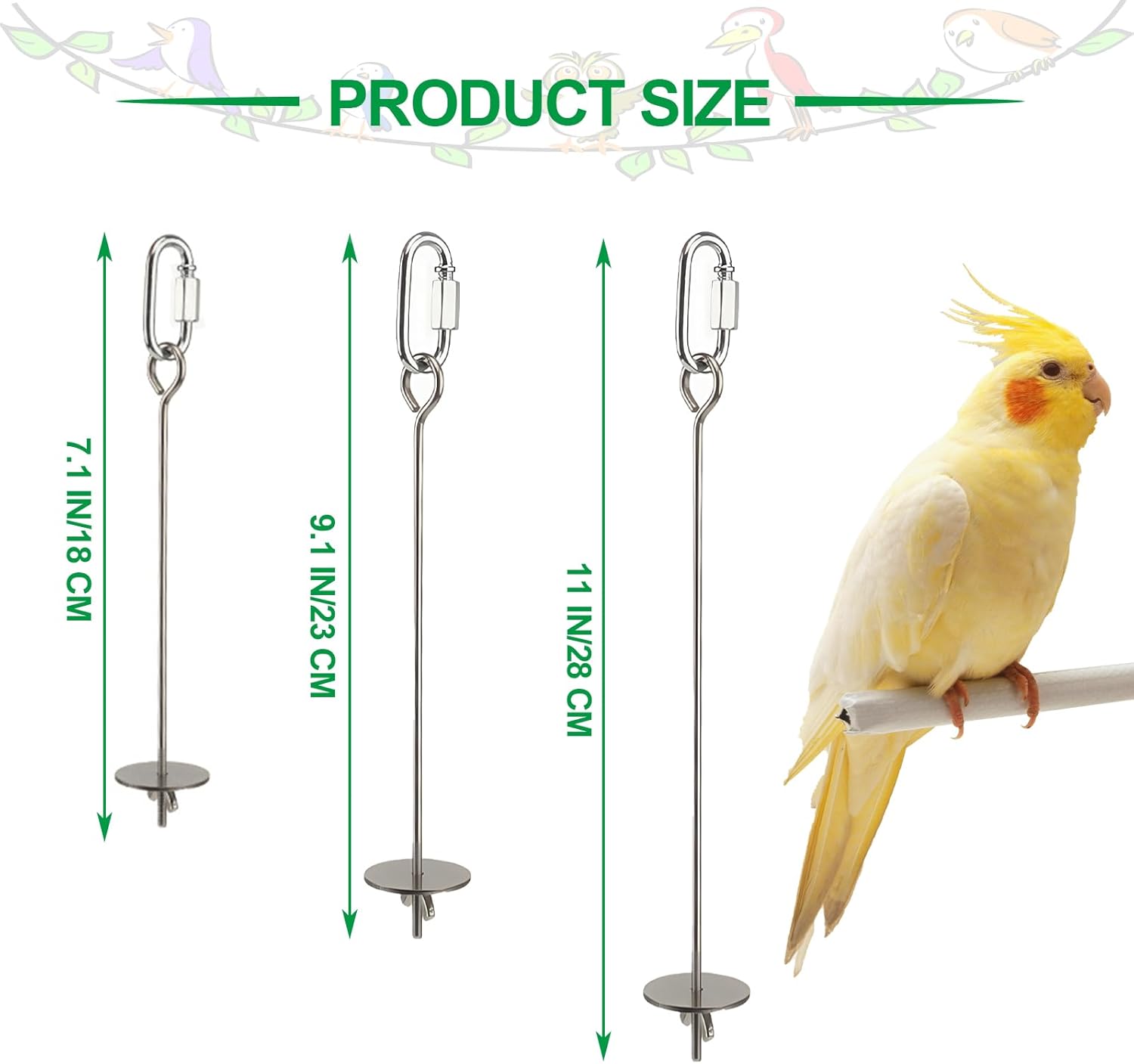 3 Pcs Bird Cage Food Holder Stainless Steel Parrot Fruit & Vegetable Skewer Hanging Foraging Toy for Parakeets, Budgies, Macaws