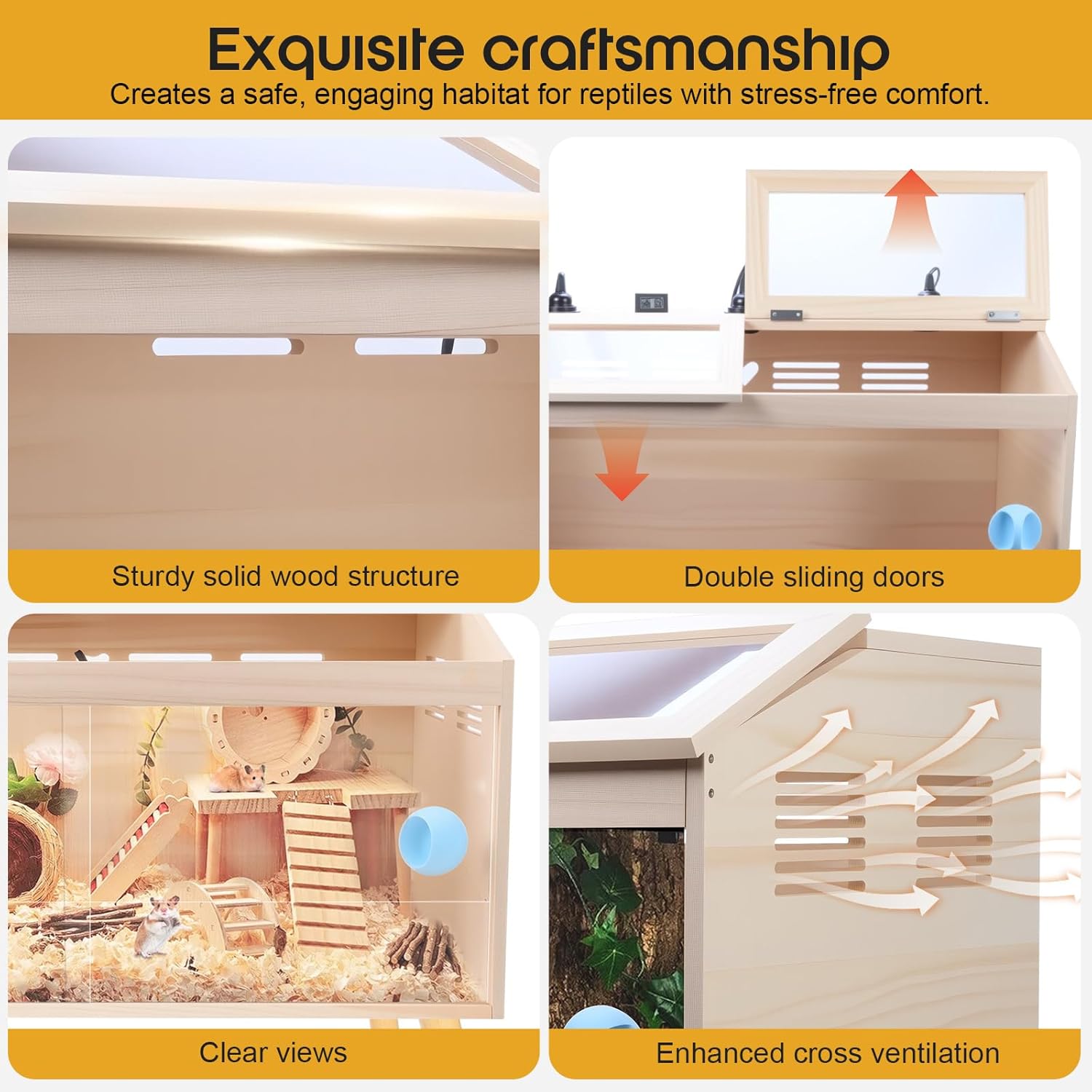 - Engineered for Reptile Health β Features adjustable side ventilation vents to balance airflow and humidity, paired with odor-resistant, eco-friendly wood for a safe habitat.