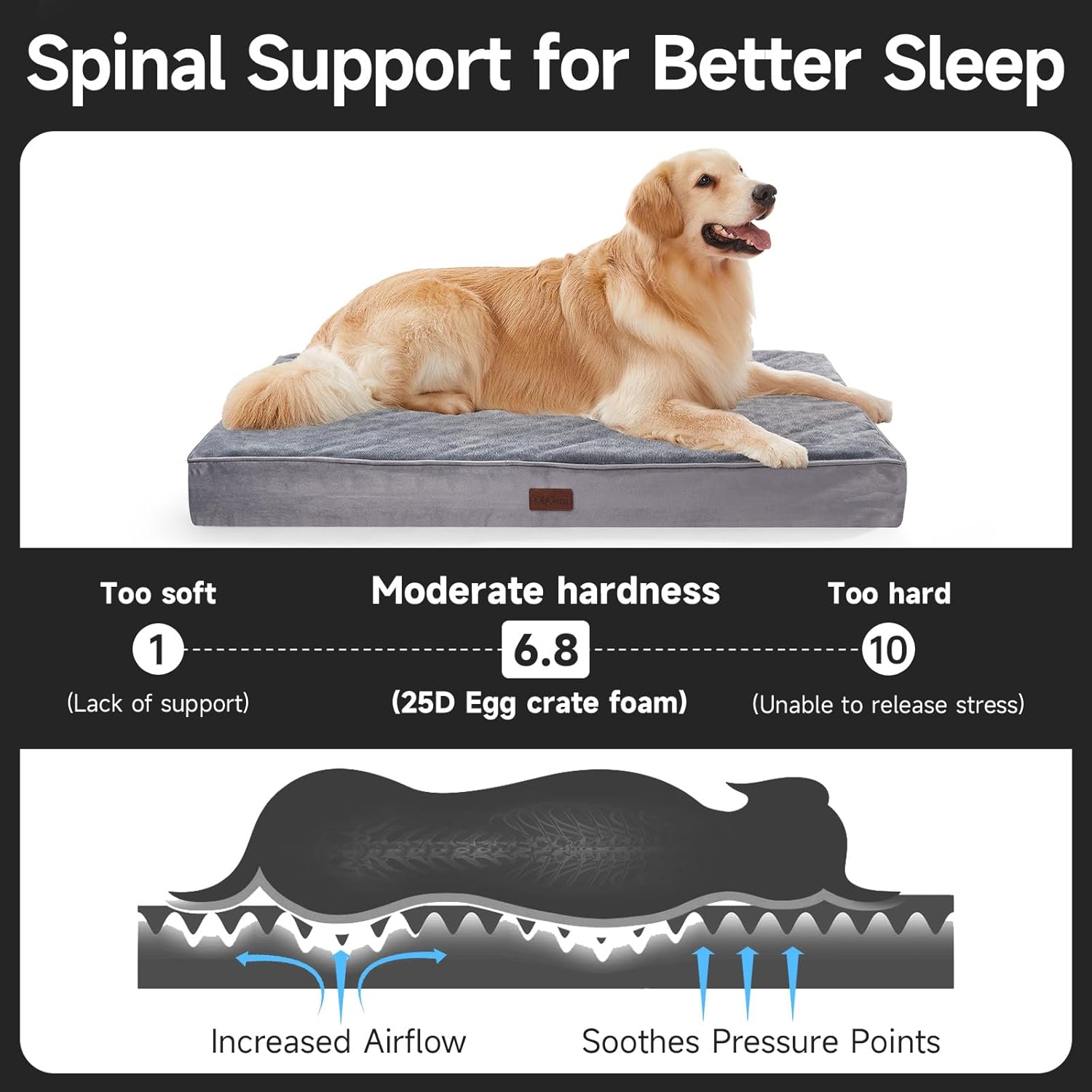 OhGeni Orthopedic Waterproof & Machine Washable Dog Bed for Large Pets, Suitable for Crates, 25D Egg Crate Foam, Non-Slip Bottom & Removable Cover, Flannel Fabric, 41 Inches(Gray)
