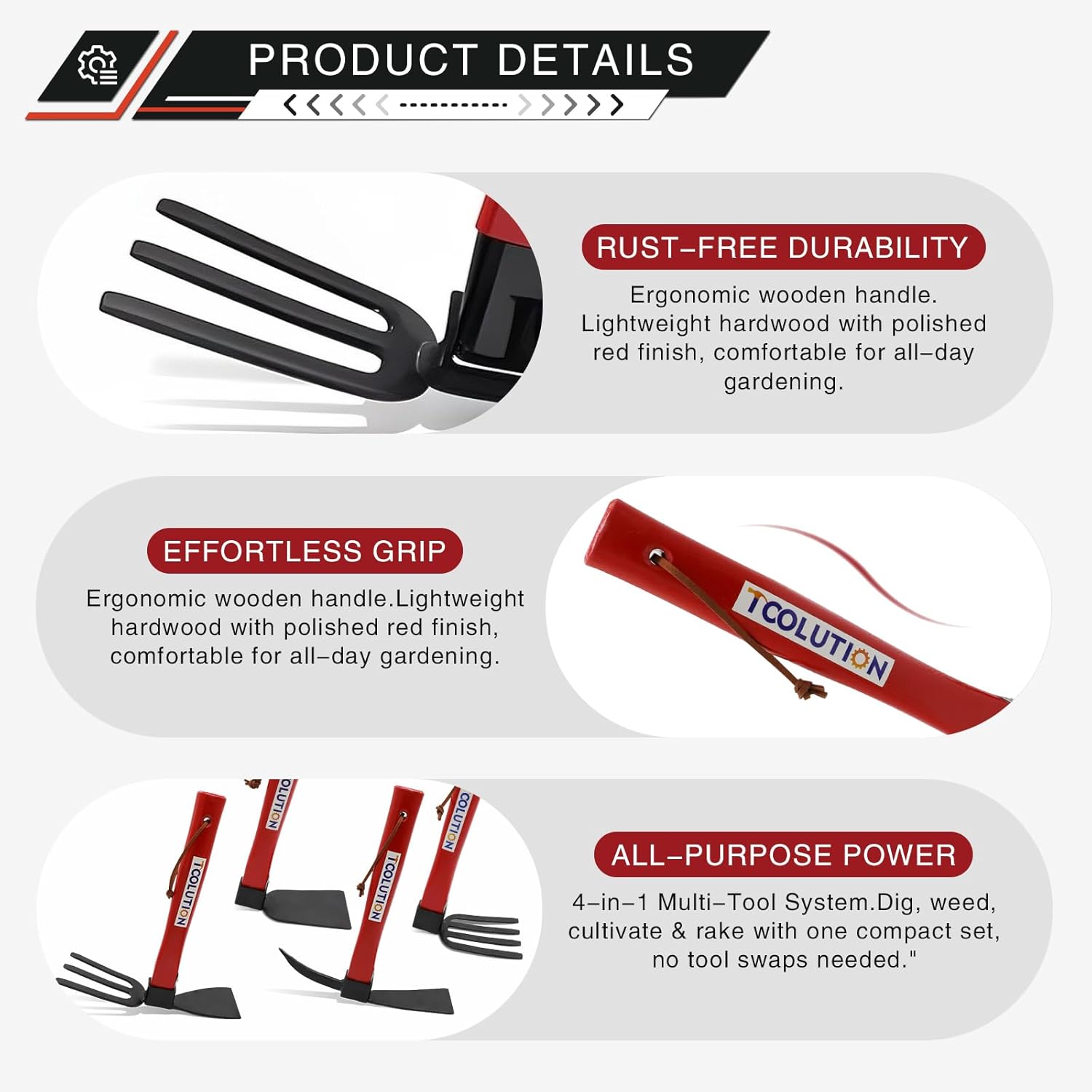 - Ergonomic Textured-Grip HandlesοΌ Wooden handles with textured coating enhance control during light gardening tasks. Minimizes slipping and reduces palm fatigue for sessions under 1 hour.