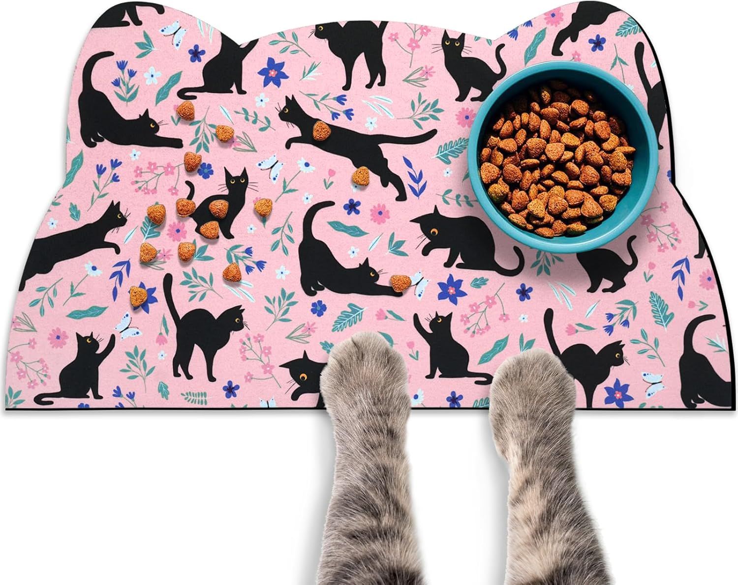 - 【Fun & Fashionable Print】These cat eating mats come in a variety of different shape and printing design, which allow you to choose a design that matches your home decoration and added a touch of personality and uniqueness to your pet's feeding area