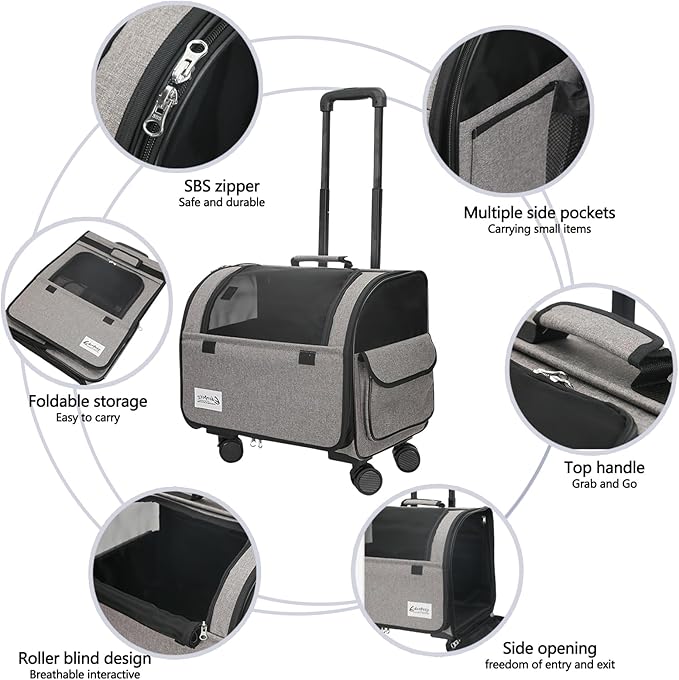 - Two ways to carry: Our pet bag allows you to easily unload the burden on your shoulders! This pet bag is equipped with 4 high-quality rollers that can rotate 360Β°, which can bring a smooth and comfortable experience even on rugged roads or grass. The top handle is convenient for hand-carrying, and two ways of carrying make travel more convenient.