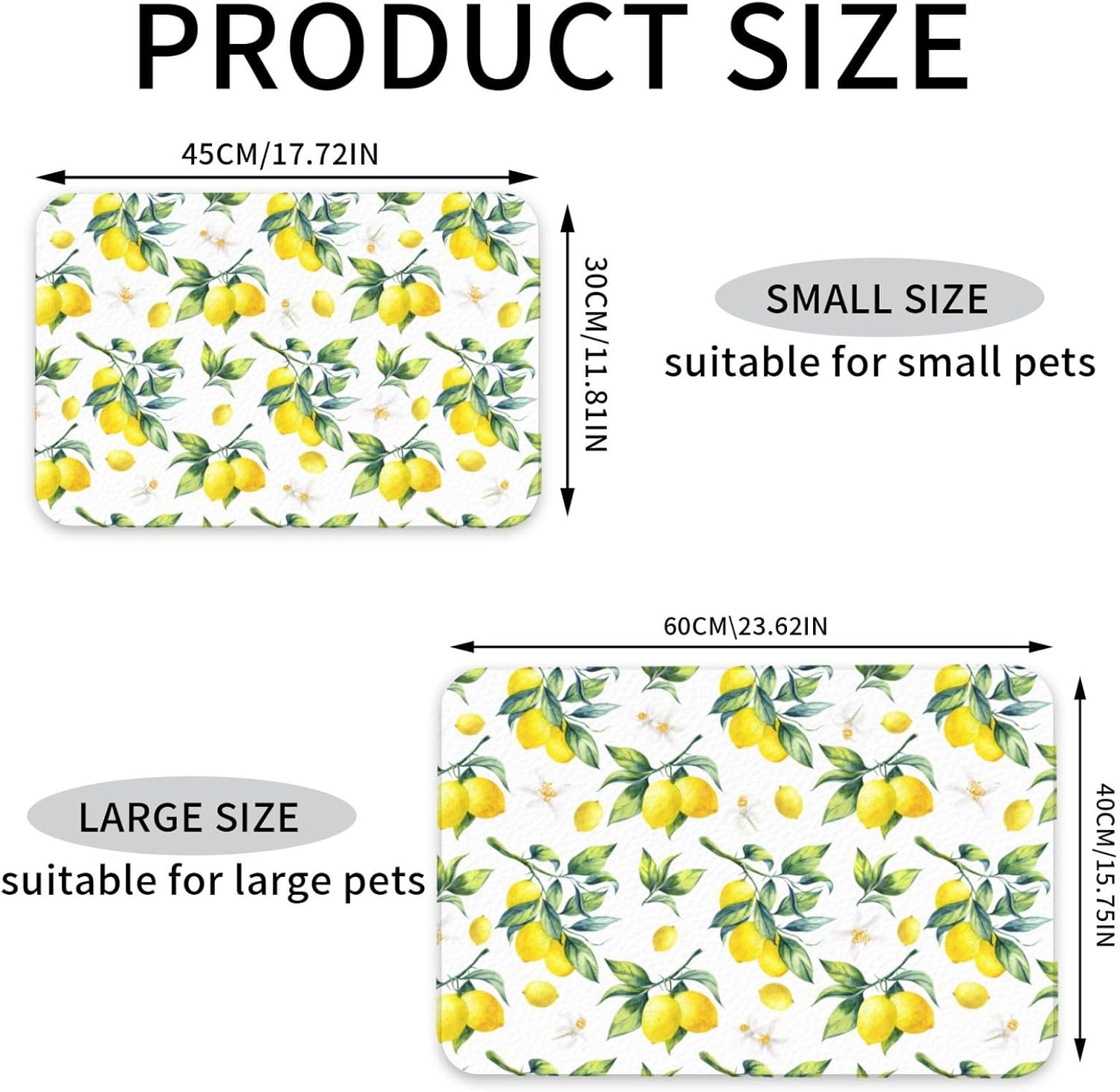 Tropical Lemon Leaves Dog Food Mat Absorbent Bowl Mats No Stains Quick Dry Waterproof Pet Cat Placemats for Food and Water, 30x45cm