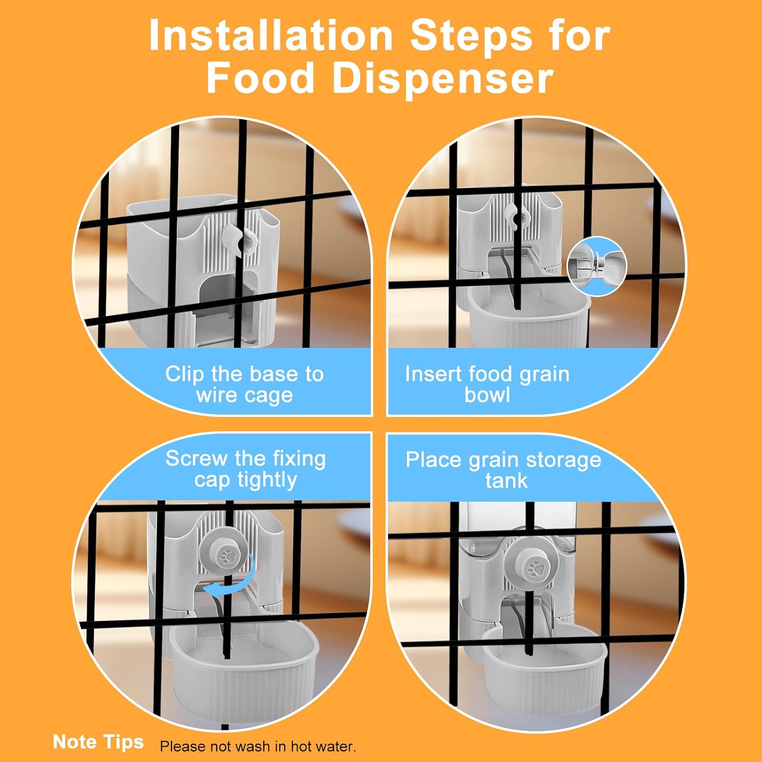 - Automatic Refilling Design: This cage hanging pet food feeder can provide plenty of food by natural gravity supply design. The gravity auto-refill feeder with a 75° sloping ramp and 5cm food outlet, pet grain can be smoothly replenished, reduce jam food.