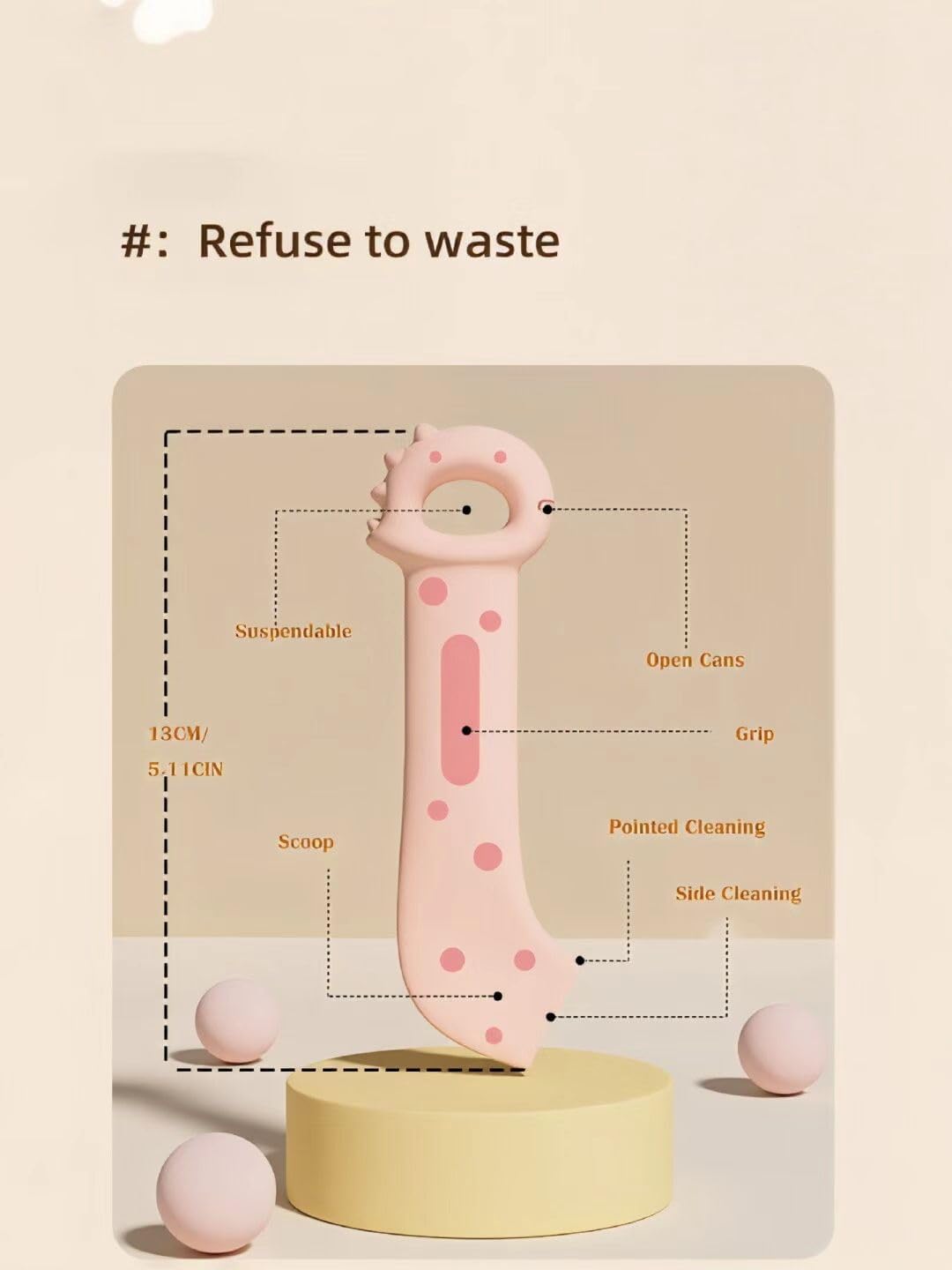 - Multi-functional Spoon: Dinosaur head design with a pointed tip for scraping corners. Ergonomic handle fits small hands. Perfect for wet food!