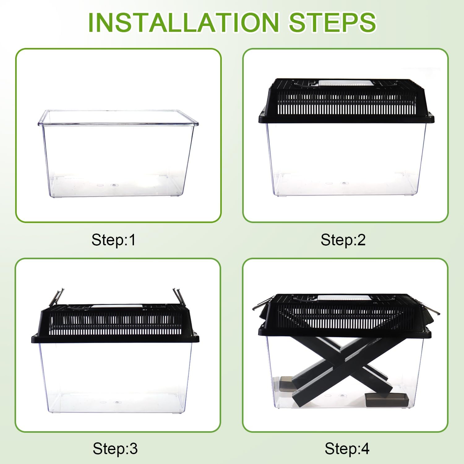 - 【Complete cricket care kit】1 x Large cricket keeper, 1 x medium cricket keeper (Equipped with 2pcs dark dispenser tubes, food dish and water bowl); 1 x tweezer; 1 x Sponge brush.