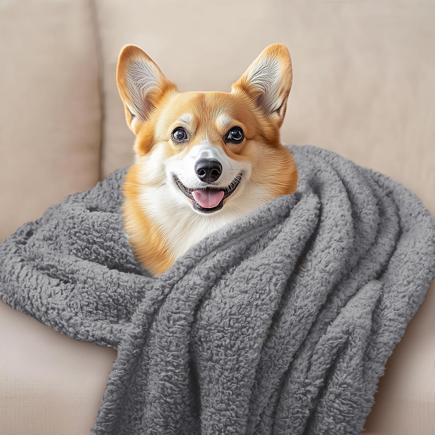 Luciphia 1 Pack 3 Calming Dog Blanket Fluffy Premium Fleece Pet Blankets Soft Sherpa Throw for Dogs Puppy Cat Grey/Beige/HazeBlue Small (23" x16")