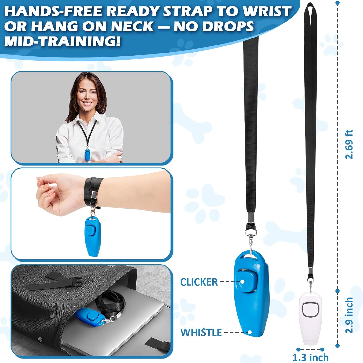 - Anti-Loss Hanging Rope: The dog clicker whistle equipped black lanyard for wearing around your neck, wrist, or attaching to your backpack. Easy to store.