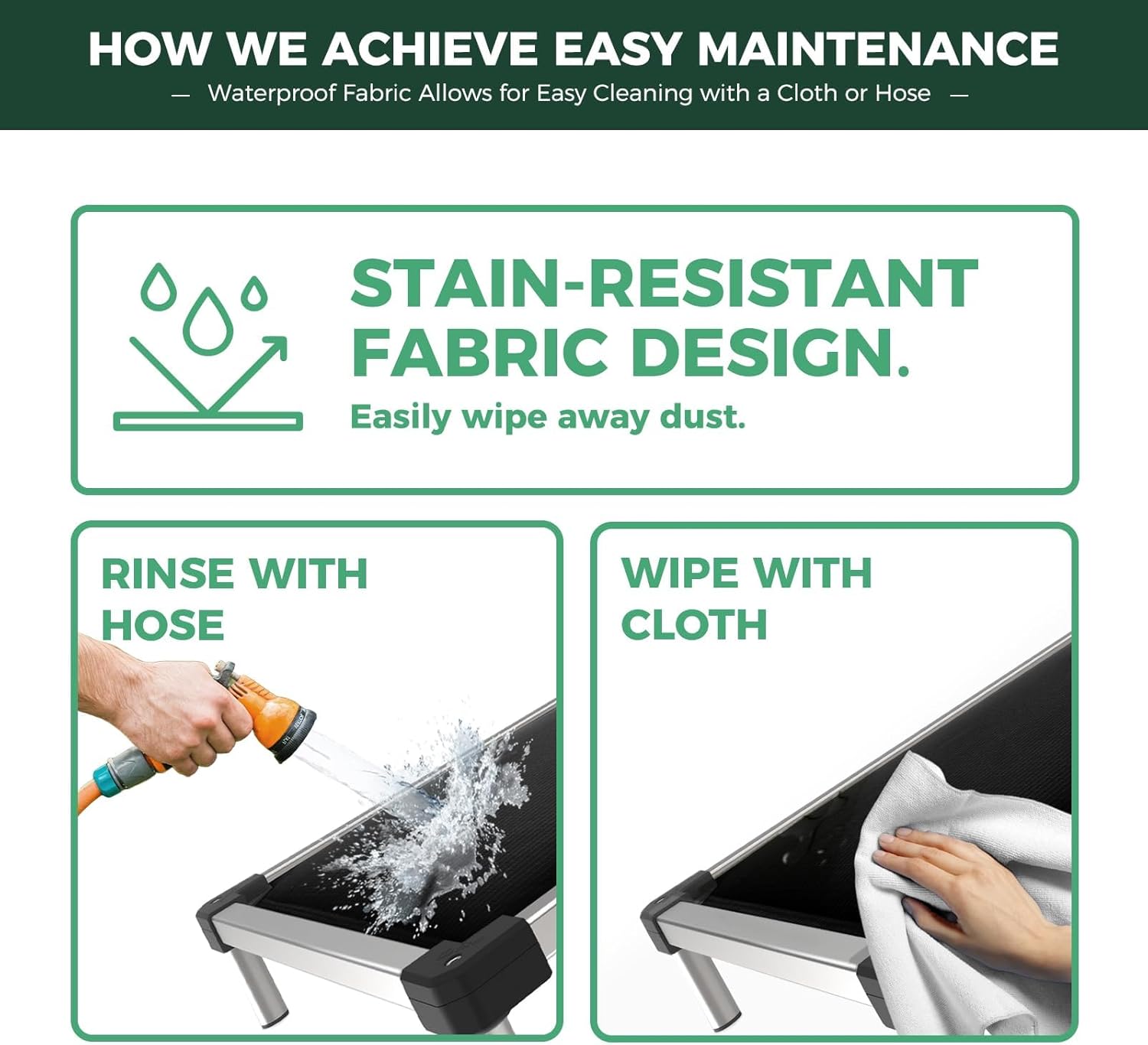 FXW TitanNest Chew-Proof Elevated Dog Bed, Raised Cot for Indoor/Outdoor/Camping Use, Durable & Washable Padded Pet Bed for Large Dogs, 47.0" L x 29.0" W x 7.3" H, Black