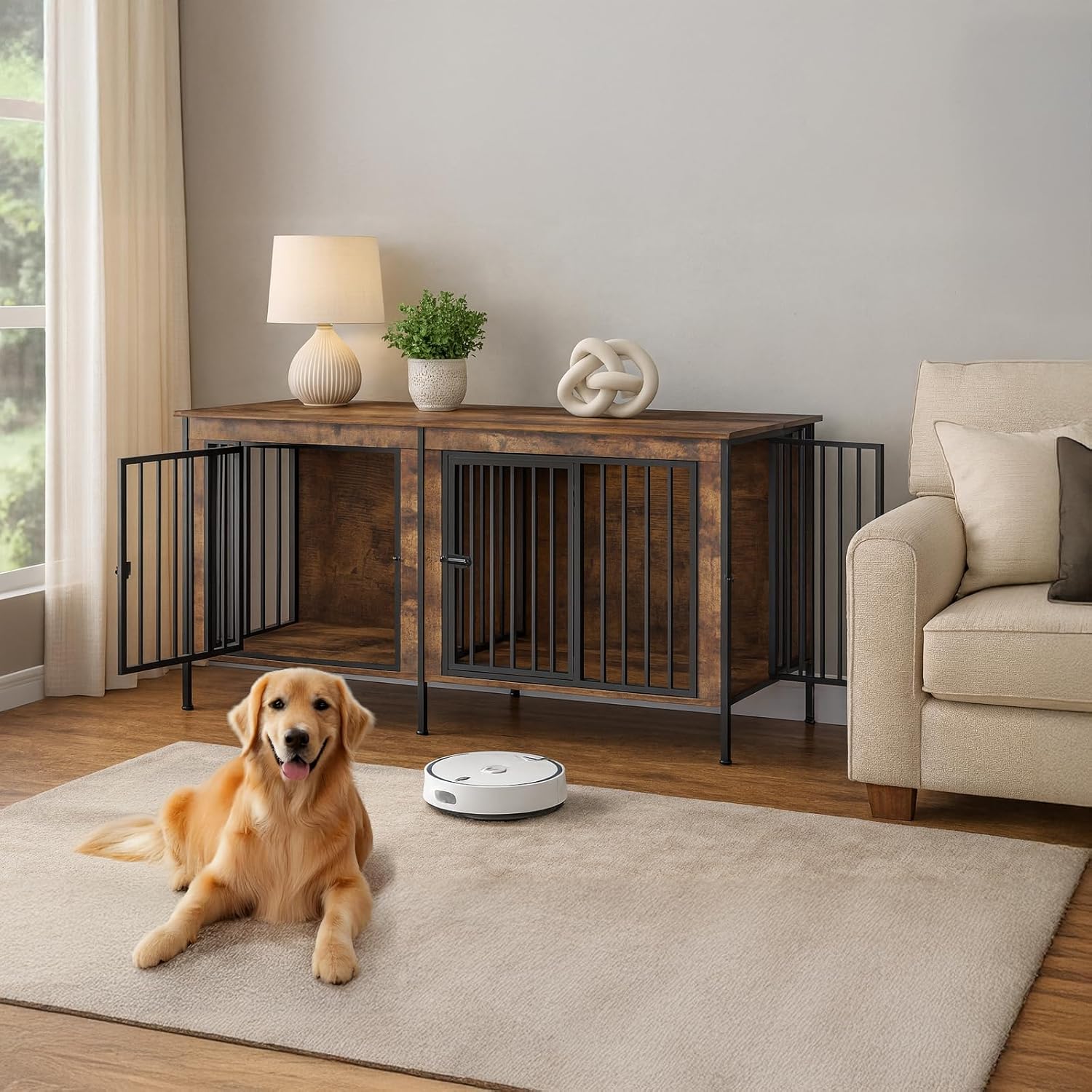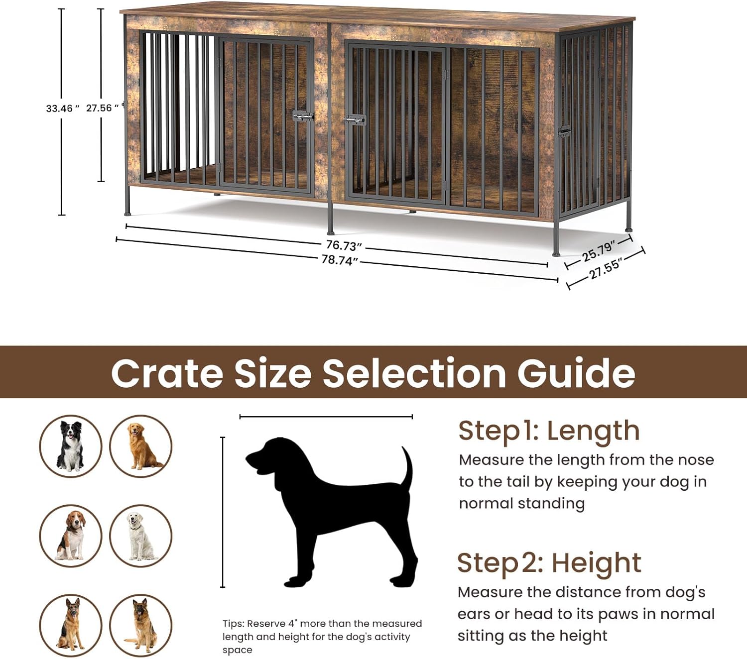 - Furniture-Style Dog Crate Table: The long rustic wood top turns the unit into a 78-inch console or TV stand that holds lamps, plants, books and more. It blends with modern, farmhouse or industrial dΓ©cor, saving floor space by combining storage and a stylish dog cage furniture piece.
